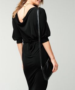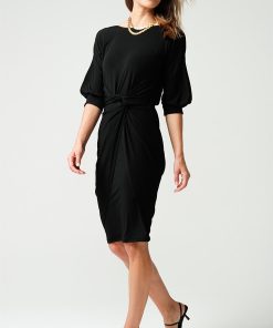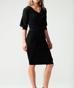 3/4 Sleeve Reversible Knee-Length Cowl Tie Drape Dress in Black