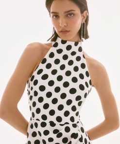 Joseph Ribkoff Polka Dot Print Halter Dress – Vanilla/Black