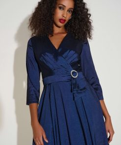 Joseph Ribkoff Signature Stretch Taffeta Fit & Flare Dress – Midnight Blue