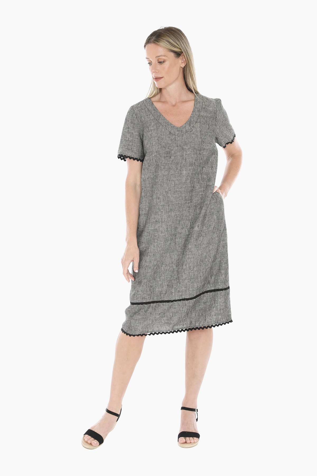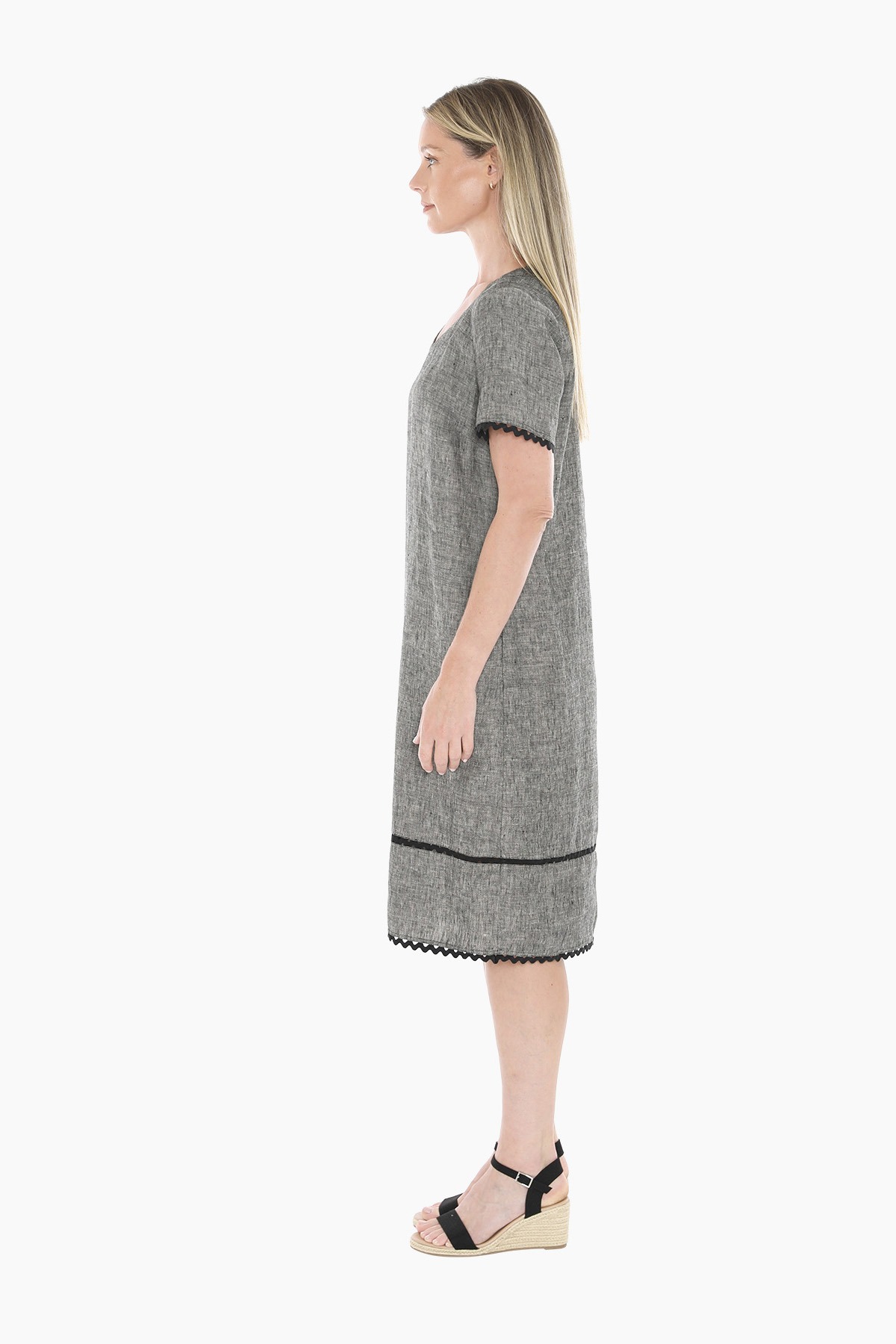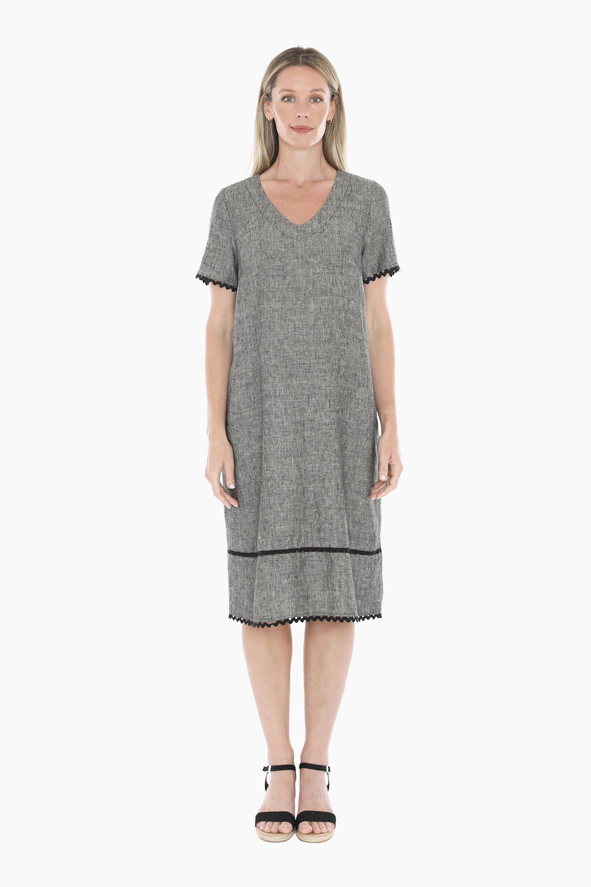 The Ric Rac Short Sleeve Shift Dress is a timeless wardrobe staple, featuring a relaxed shift silhouette for effortless wear.