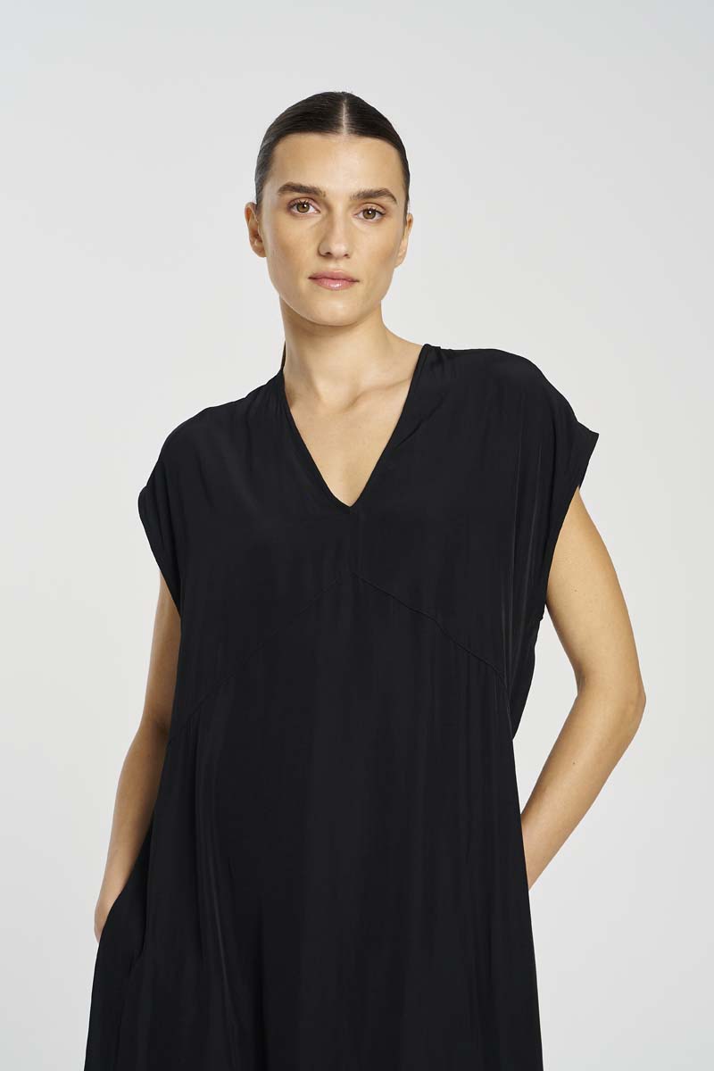 The Mela Purdie Maxi Slice Dress, crafted from Mache is a wardrobe essential. This Maxi Length style features a v-neckline down front and side splits at hem for extra movement. This dress has endless styling possibilities.