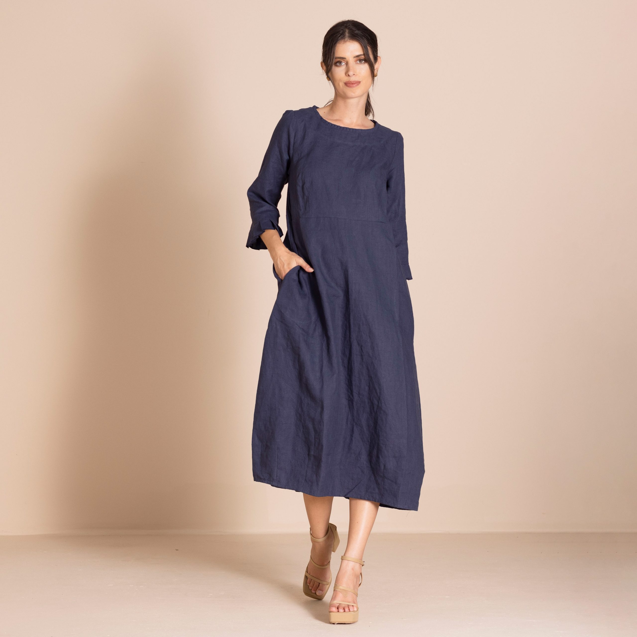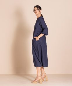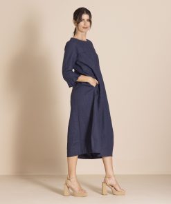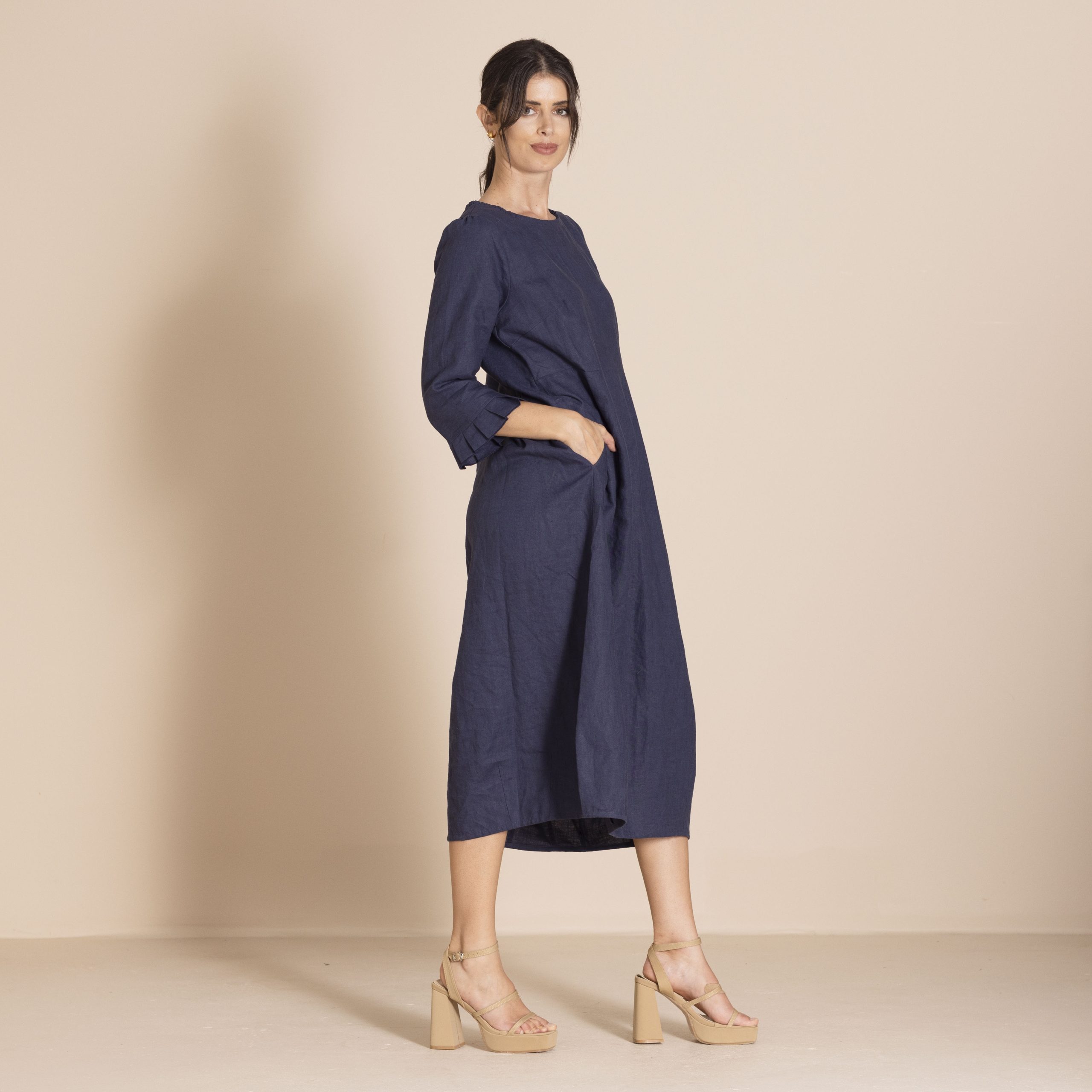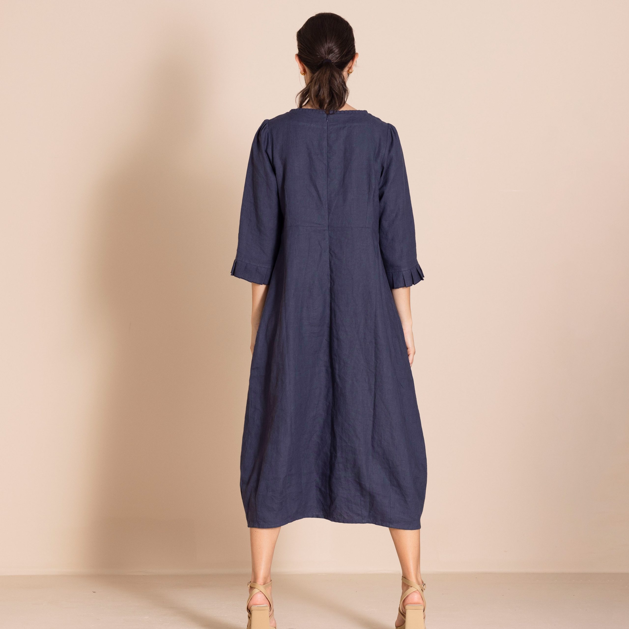 Megan Salmon Lulu Pleat Romance Dress – Navy