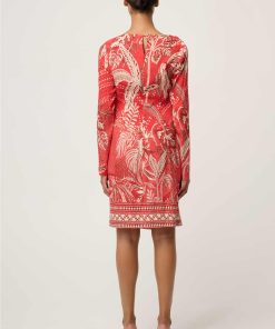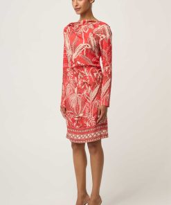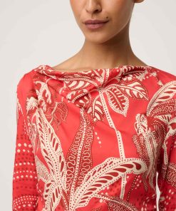 Refined, feminine, and effortlessly sophisticated, the Helsa Draped Neck Dress in Crimson Palms is designed to make a statement with understated elegance.