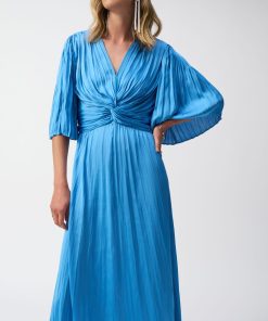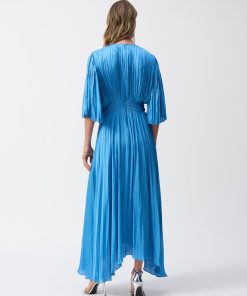 Joseph Ribkoff Pleated Satin Midi Dress – Coastal Blue