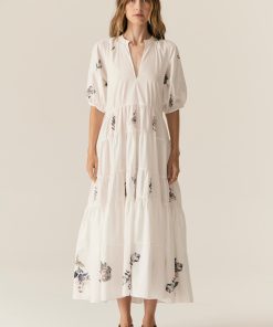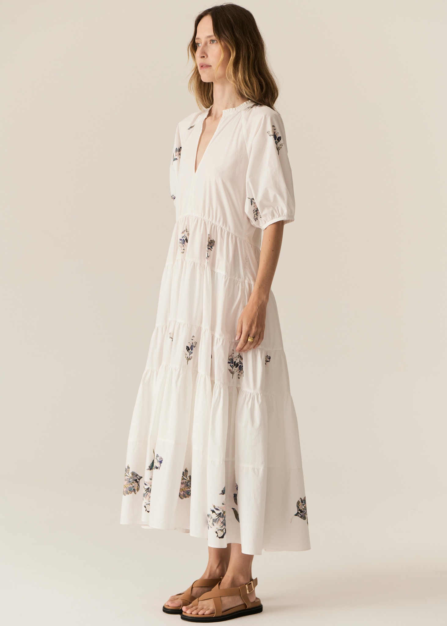 Pol Clothing Botanist Tiered Dress – White/Floral
