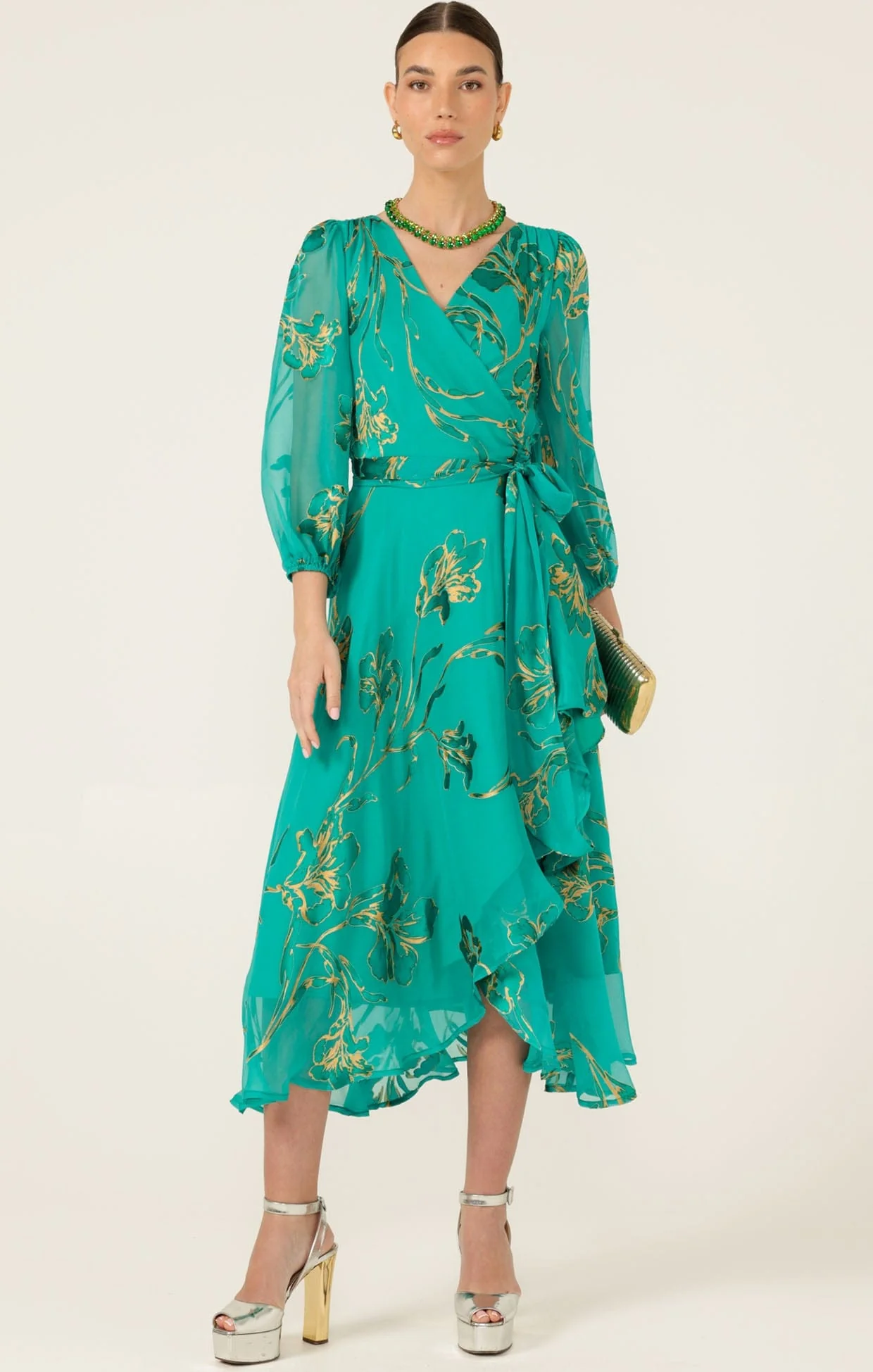 Sacha Drake Lorelei Wrap Midi Dress – Jade/Gold Floral