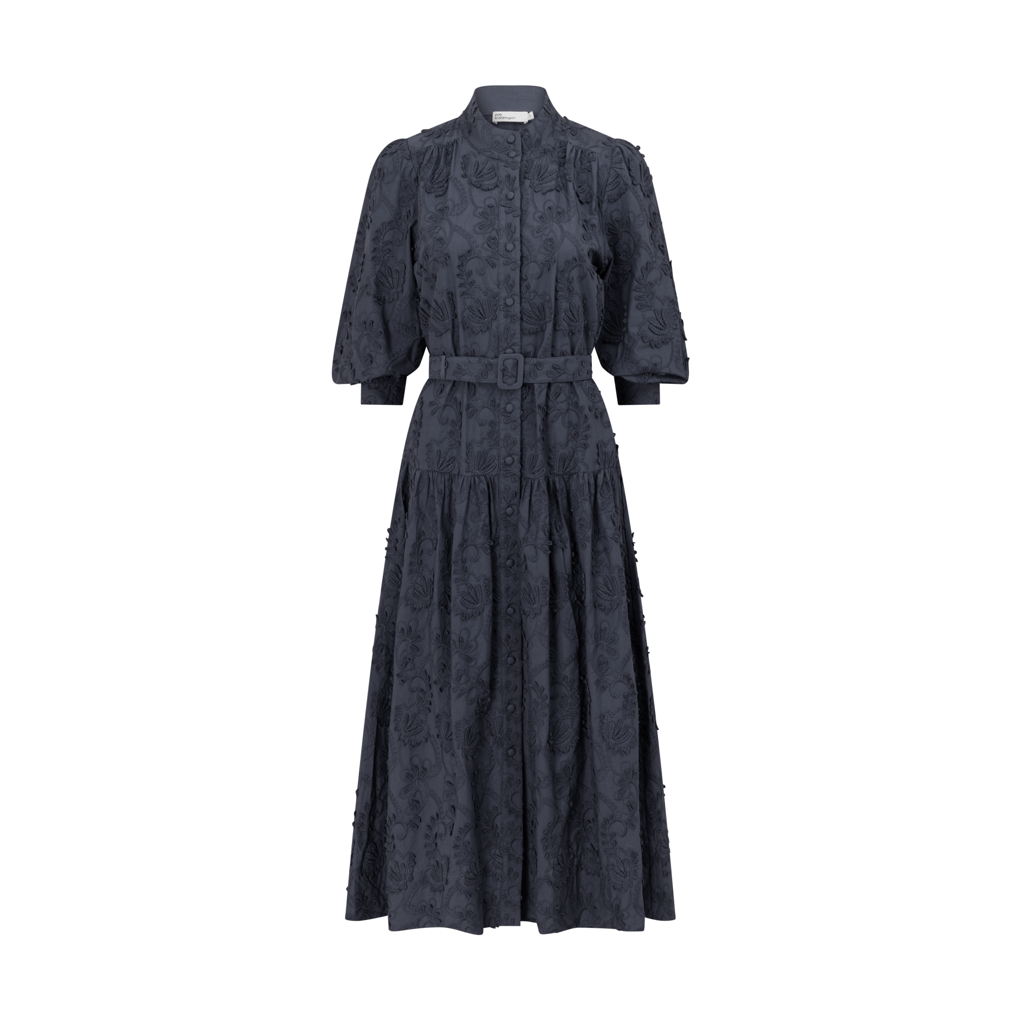 • matching fabric belt allows for versatile styling and waist definition