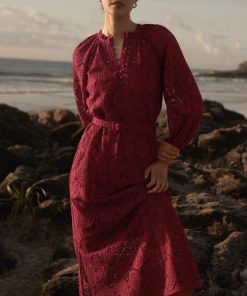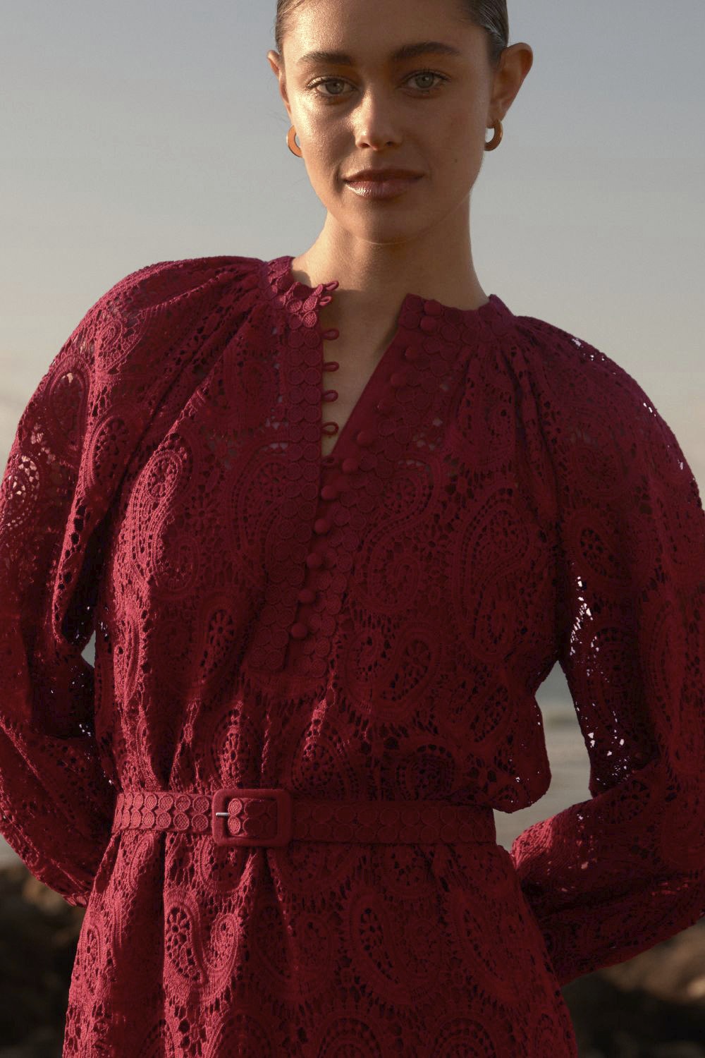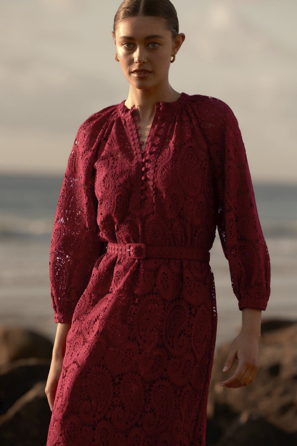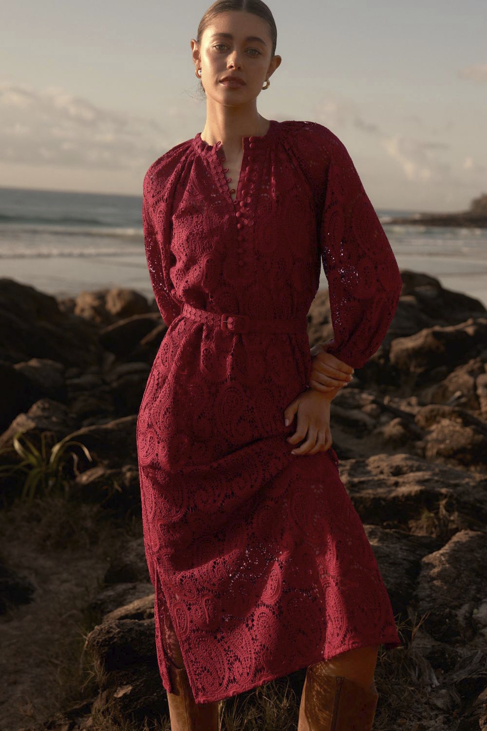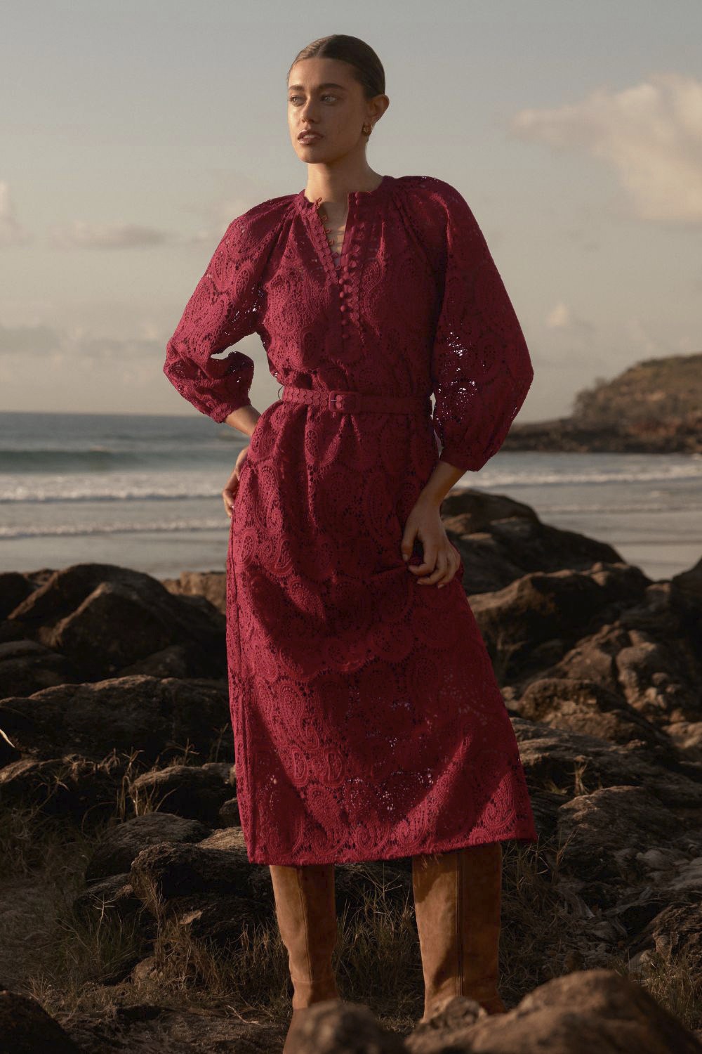 A nostalgic note with modern ease. The sonnet dress pairs fluid movement with delicate lace detailing.