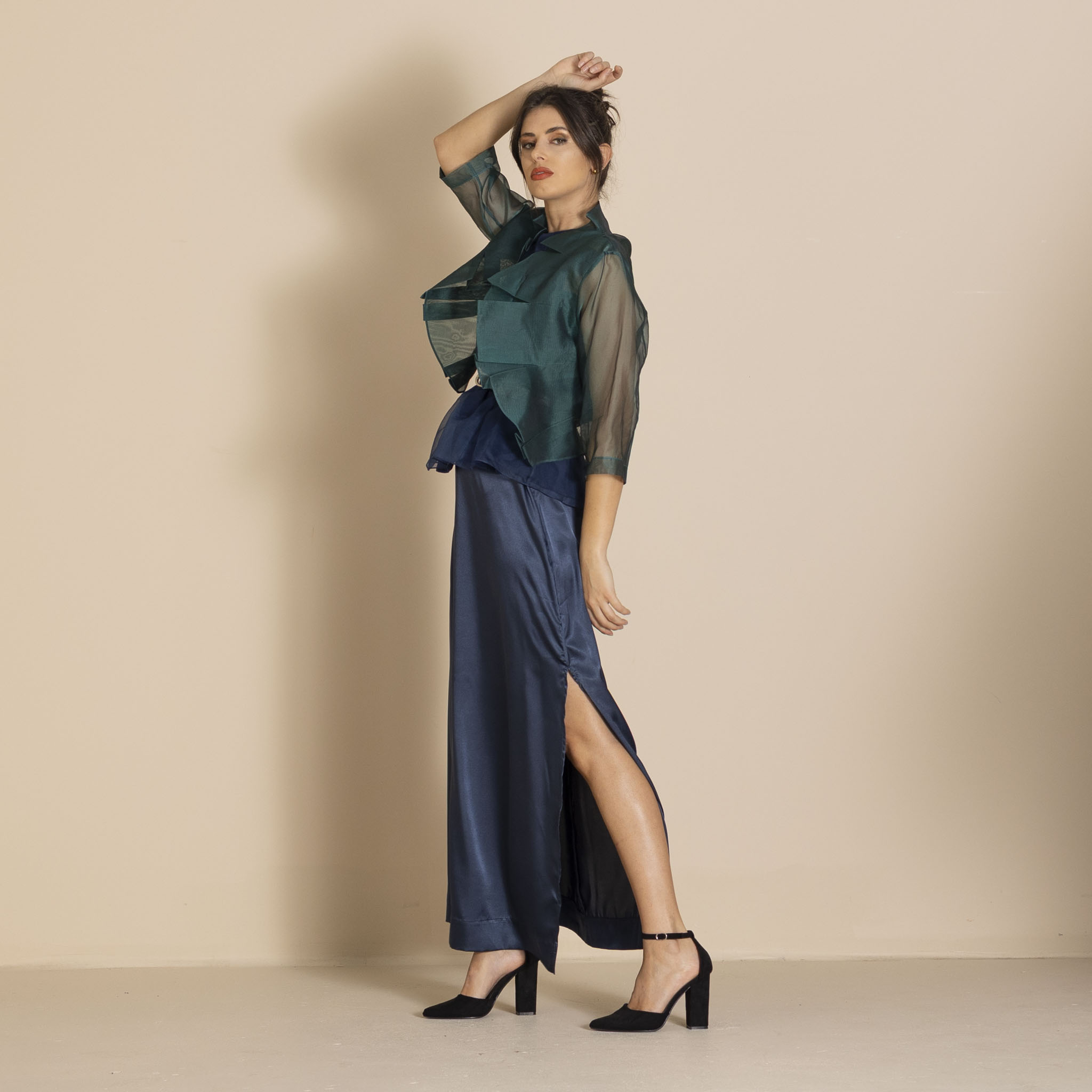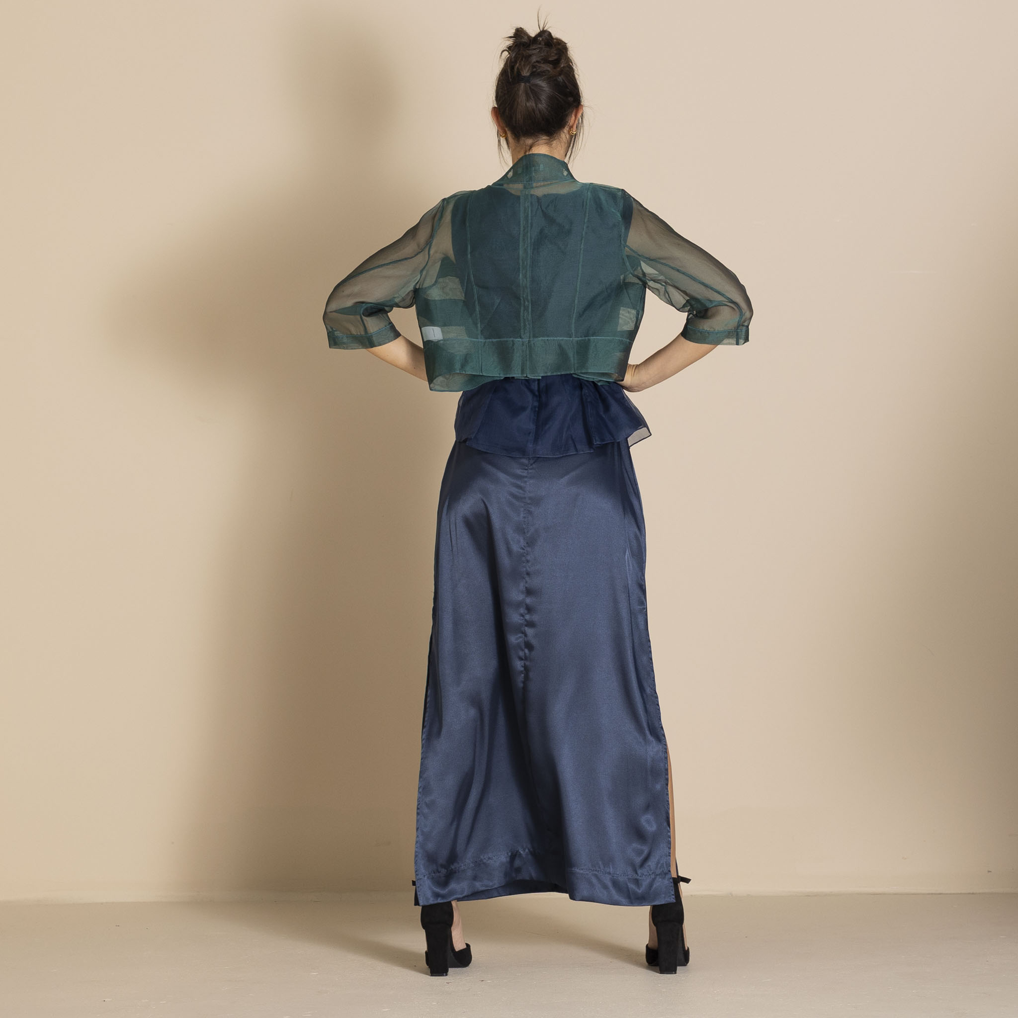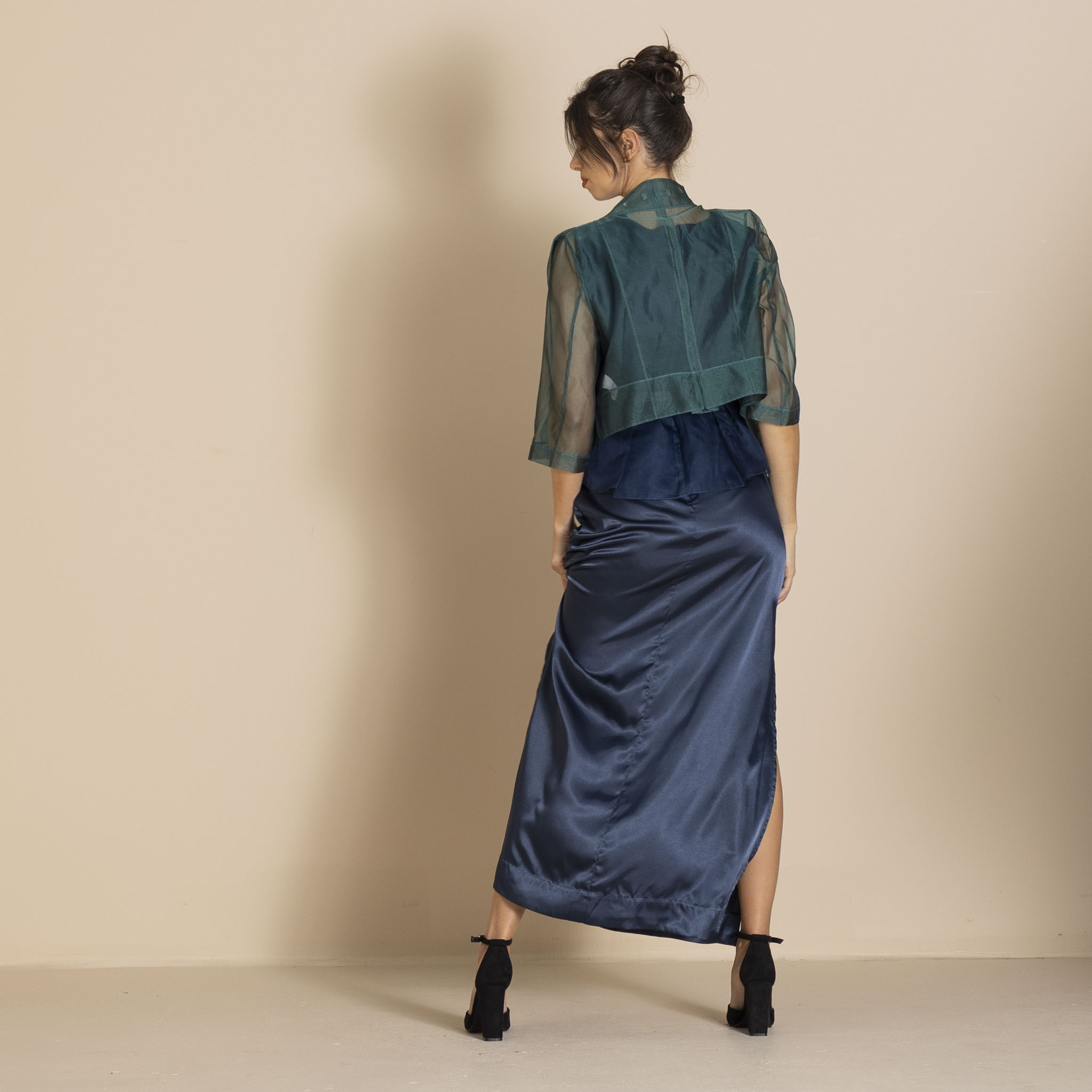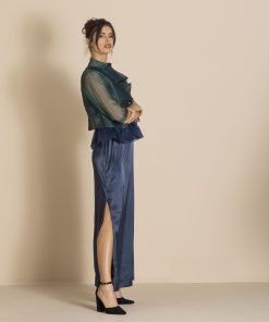 Megan Salmon Silk Organza Mozart Jacket – Bottle Green