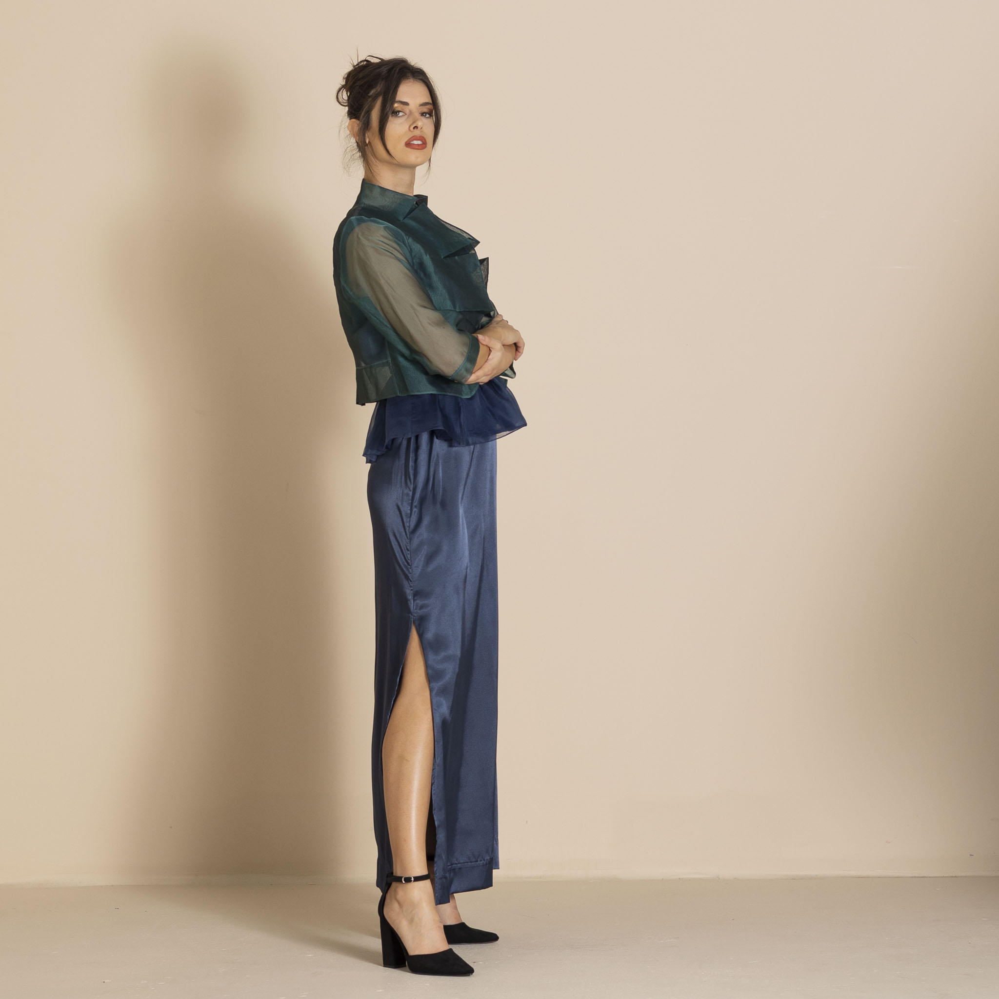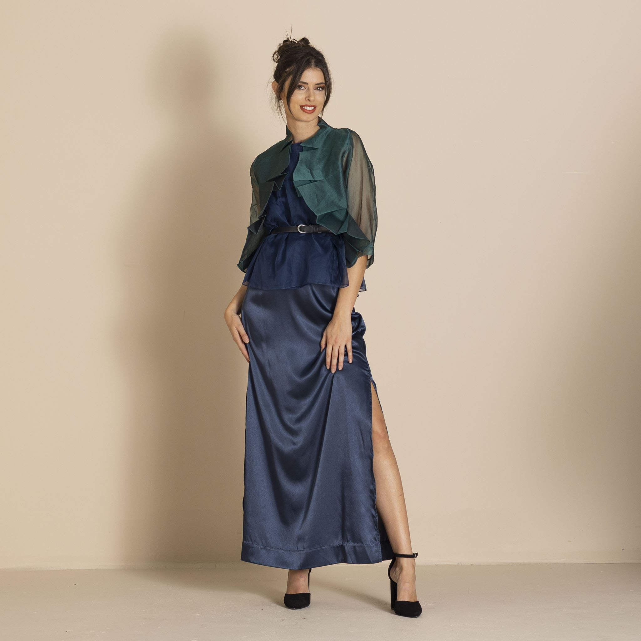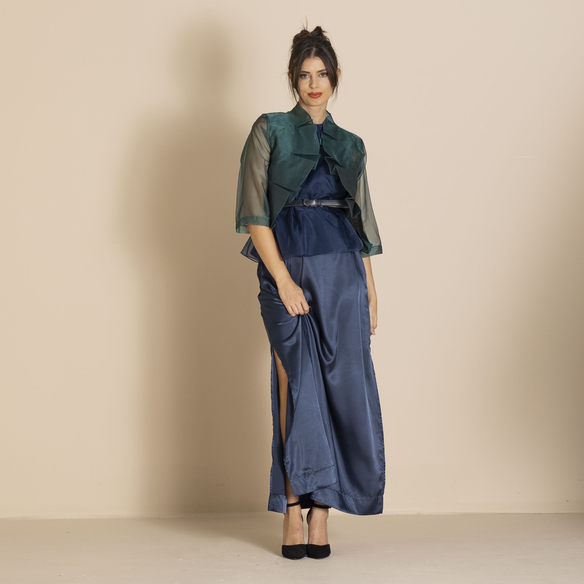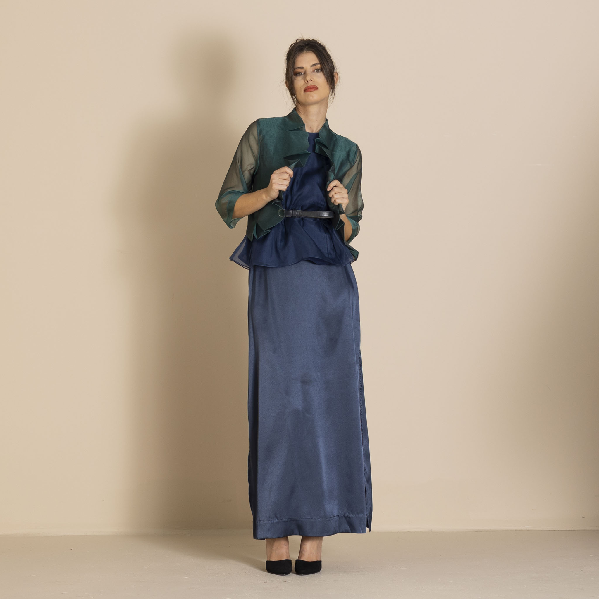 Megan Salmon Silk Organza Mozart Jacket – Bottle Green