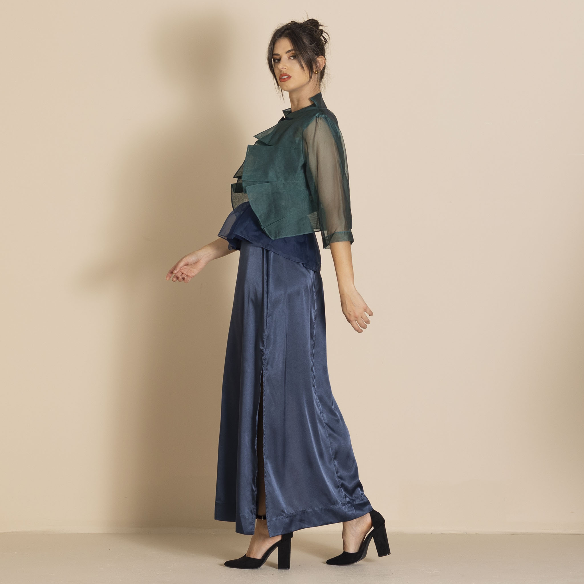 The organza mozart jacket is a perfect final layer for your next special occasion. With a nod to the Baroque era of Mozart, featuring a striking large pleat collar that gently fans around the neckline. The cropped length makes it versatile and three-quarter sleeves make it perfect for the warmer months.