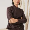 The rich walnut brown tone adds depth and timeless appeal, making it the perfect layering piece for both day and evening styling. Its cropped silhouette is tailored to sit just above the waist, creating a flattering proportion that pairs beautifully with high-waisted skirts, leather trousers, or tailored pants.