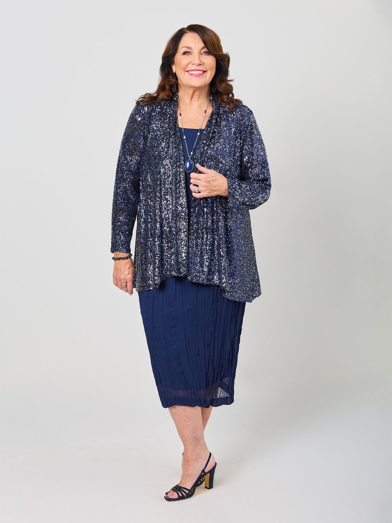 Swish Sequin Evening Jacket – Sapphire/Silver