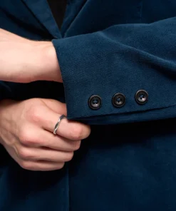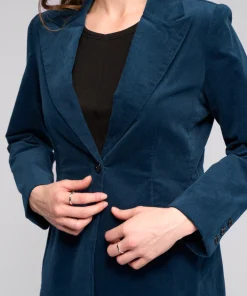 A semi-tailored blazer in soft pinwale cord, designed in our Petrol colour – a rich dark blue-green teal. This fully lined jacket features a single button closure, double jet pockets, and three-button cuffs, offering a textured yet polished layer for effortless styling.