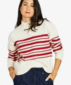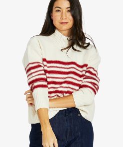 Jump Reverse Stripe Pullover – Ivory/Cherry