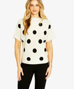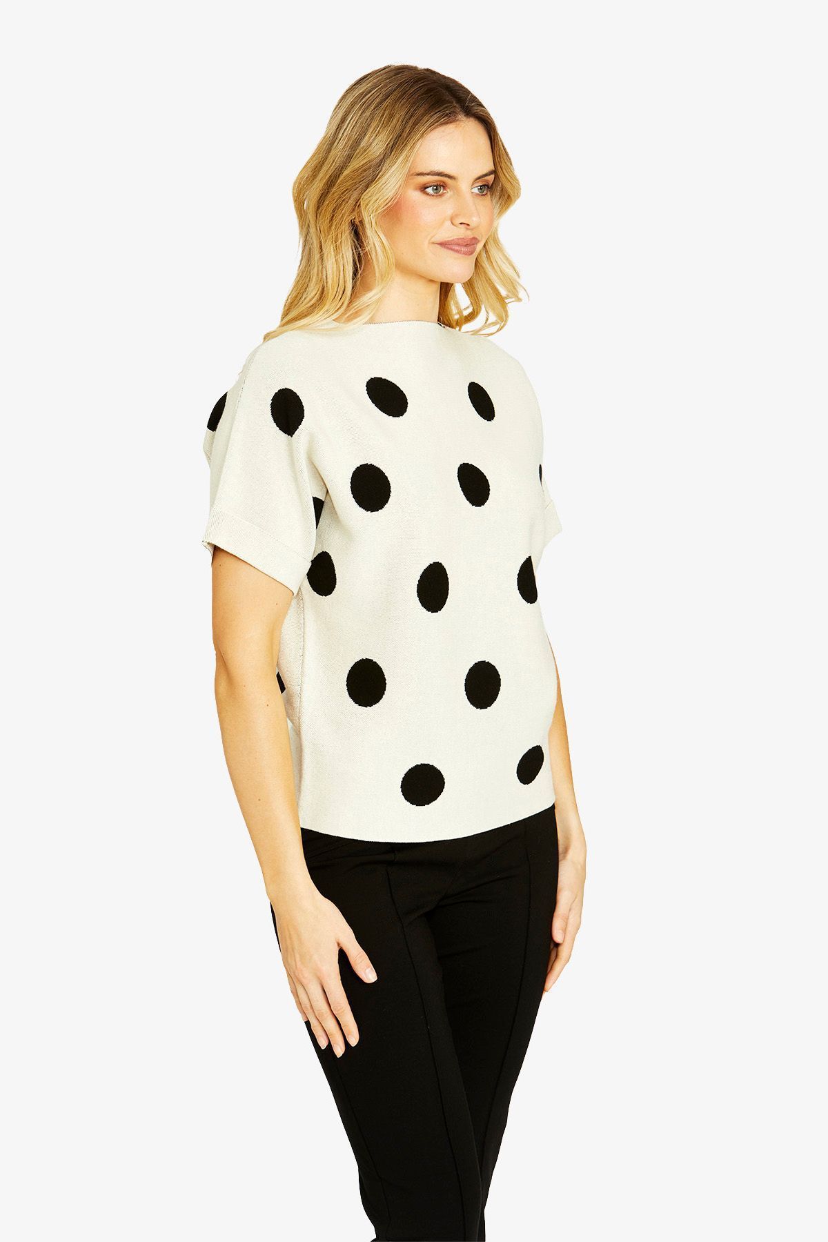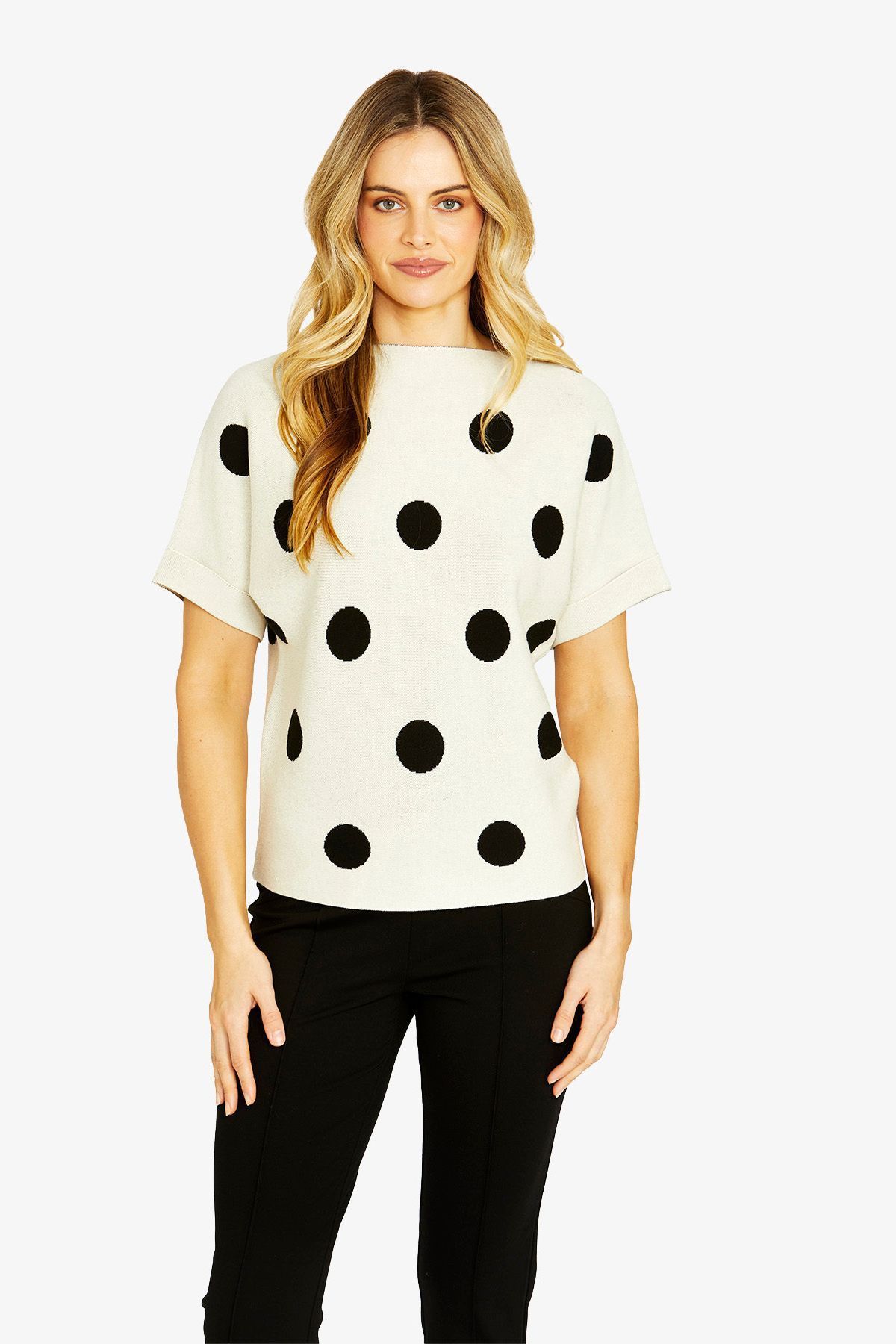 SKU: P605011 Mia Spot Pullover Ivory/Black