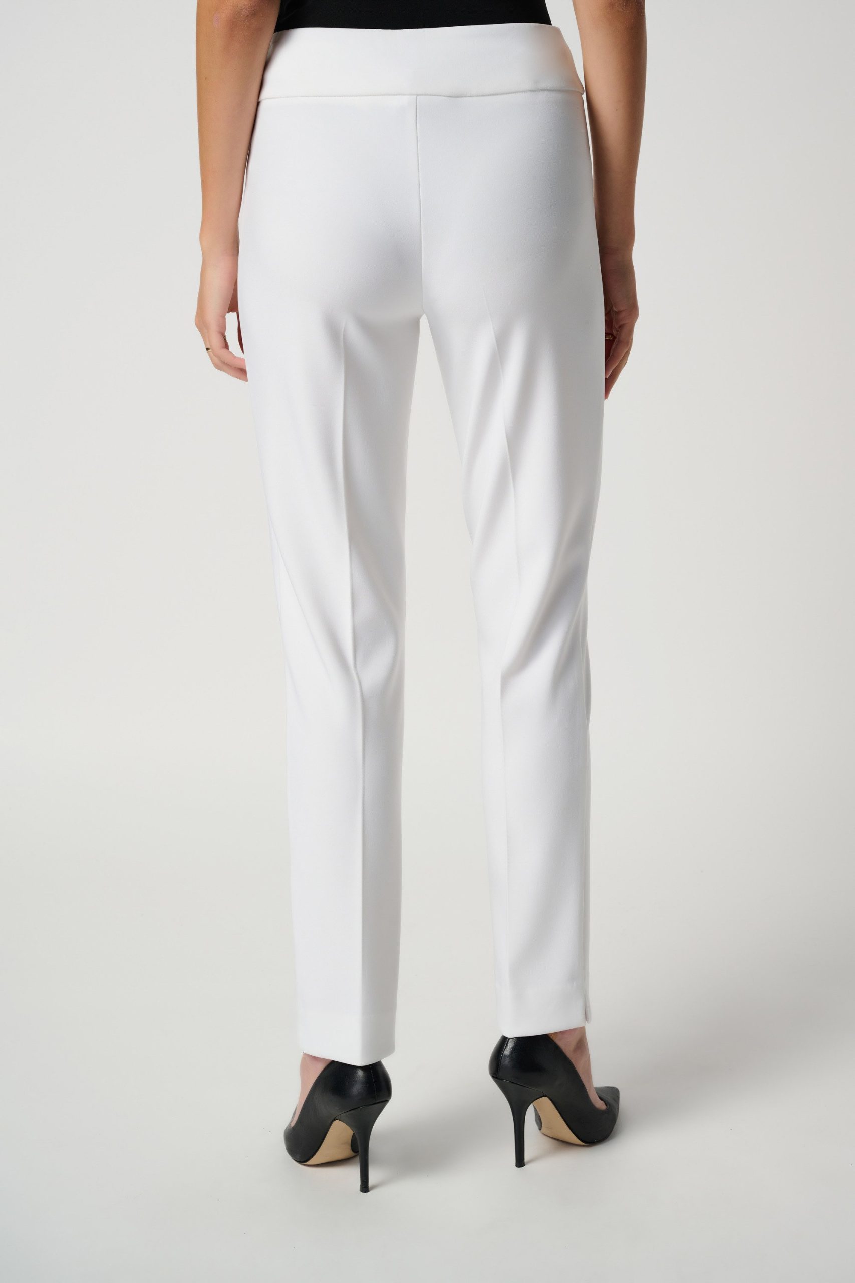 Accentuate your gorgeous legs and figure with these slim-fit pull-on tailored pants, featuring a flattering silky knit fabric. You’ll love the ease of wear and style of these classic pants, adorned by a subtle JR tab ornament.