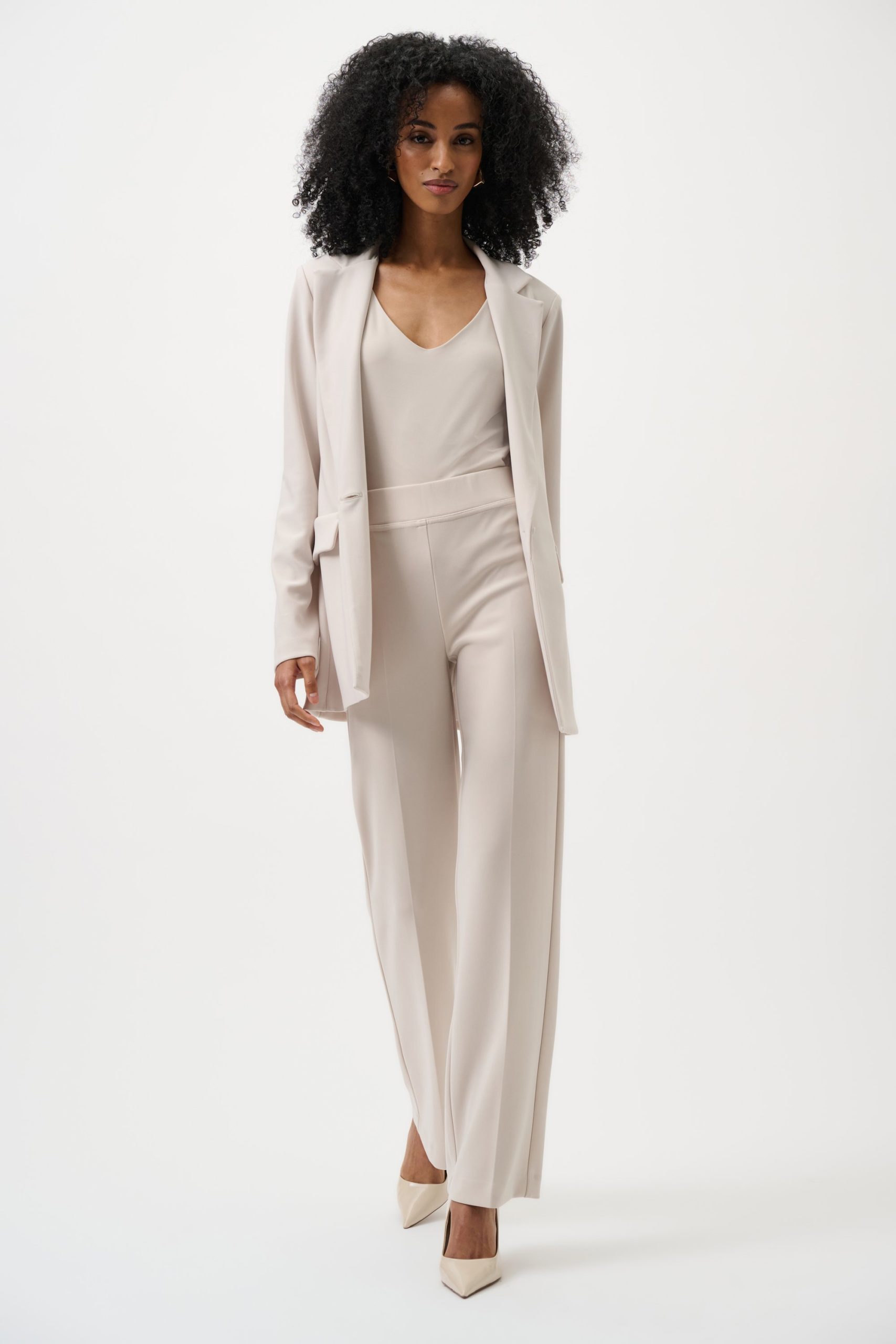 Create the illusion of longer legs with a slightly higher waistline in these wide-leg pants. The 32-inch inseam creates a lengthening effect especially when paired with a tucked-in blouse and fashionable heels. The silky knit fabric and elasticised waistband offer class with unparalleled comfort,