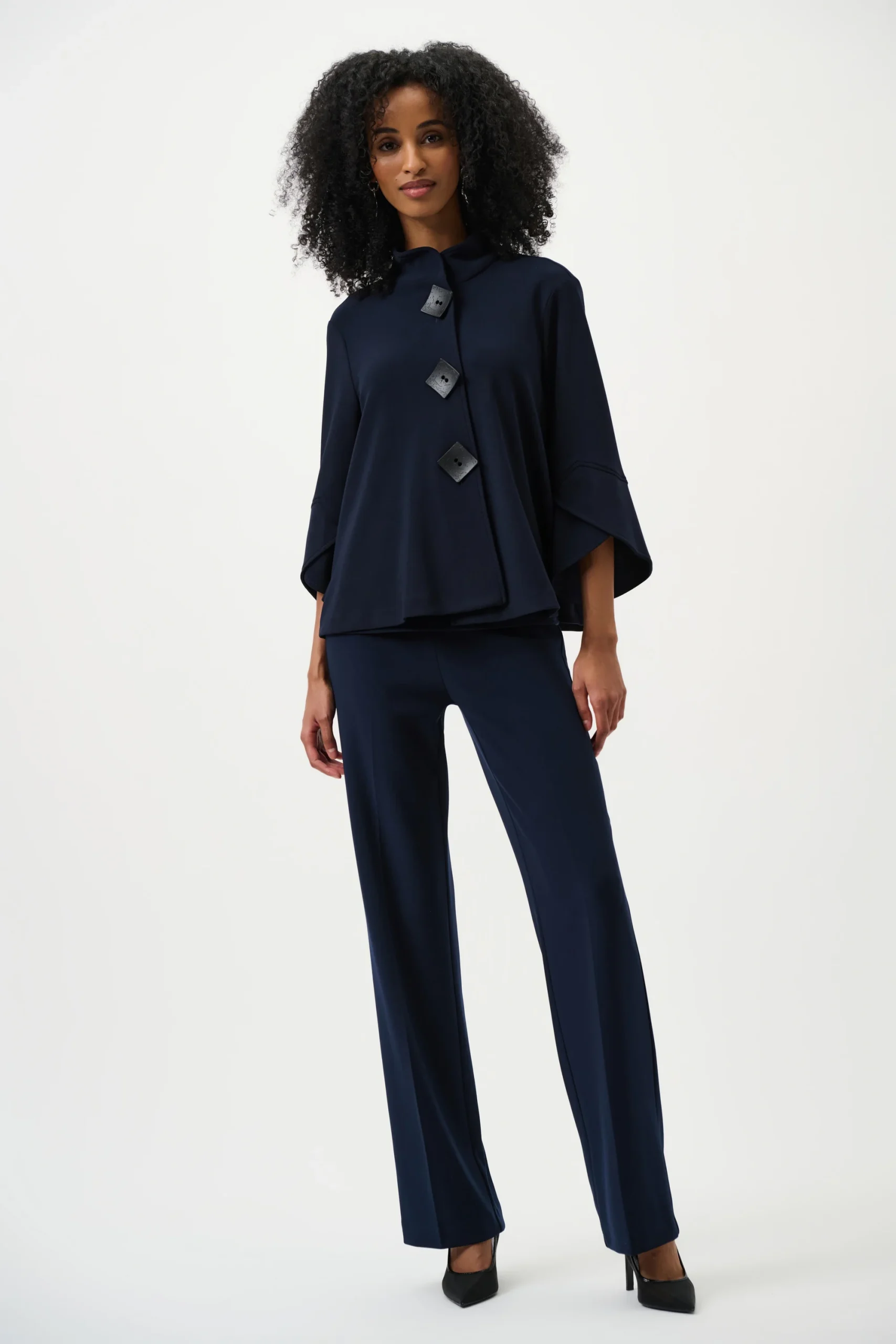 Create the illusion of longer legs with a slightly higher waistline in these wide-leg pants. The 32-inch inseam creates a lengthening effect especially when paired with a tucked-in blouse and fashionable heels. The silky knit fabric and elasticised waistband offer class with unparalleled comfort,