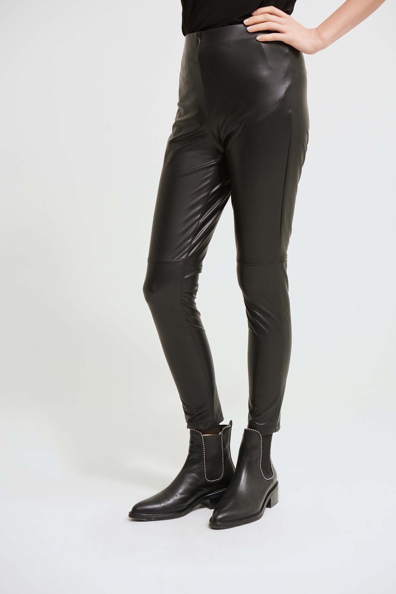 An ultra-comfortable, easy to wear pull-on leatherette pant but a piece that will inject attitude into any outfit.