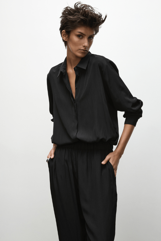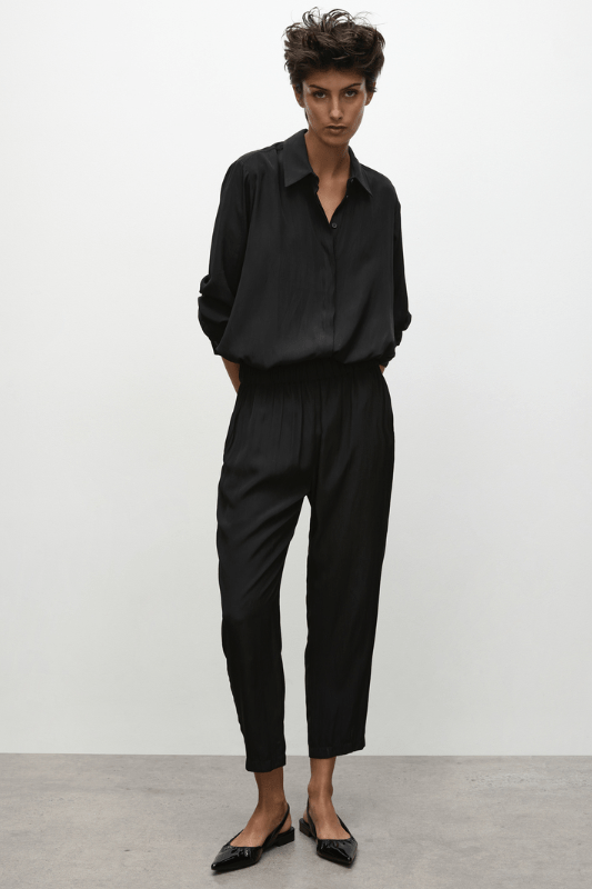 Crafted from Mela Purdie’s fluid Mache, the Soft Capri pants are slightly cropped in length and cut for tapered fit through the leg, with an elasticised waist and side entry pockets. Pair with a loose fitting top for a luxe off-duty look. 100% technical polyester
