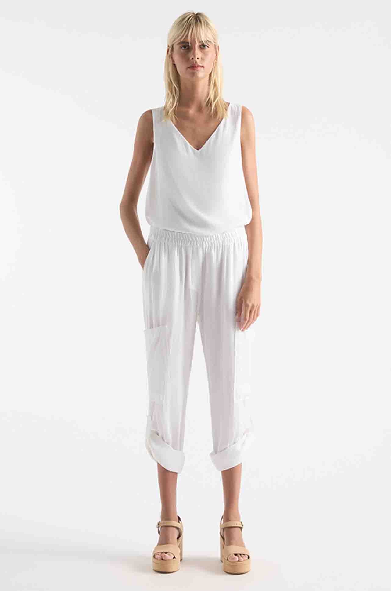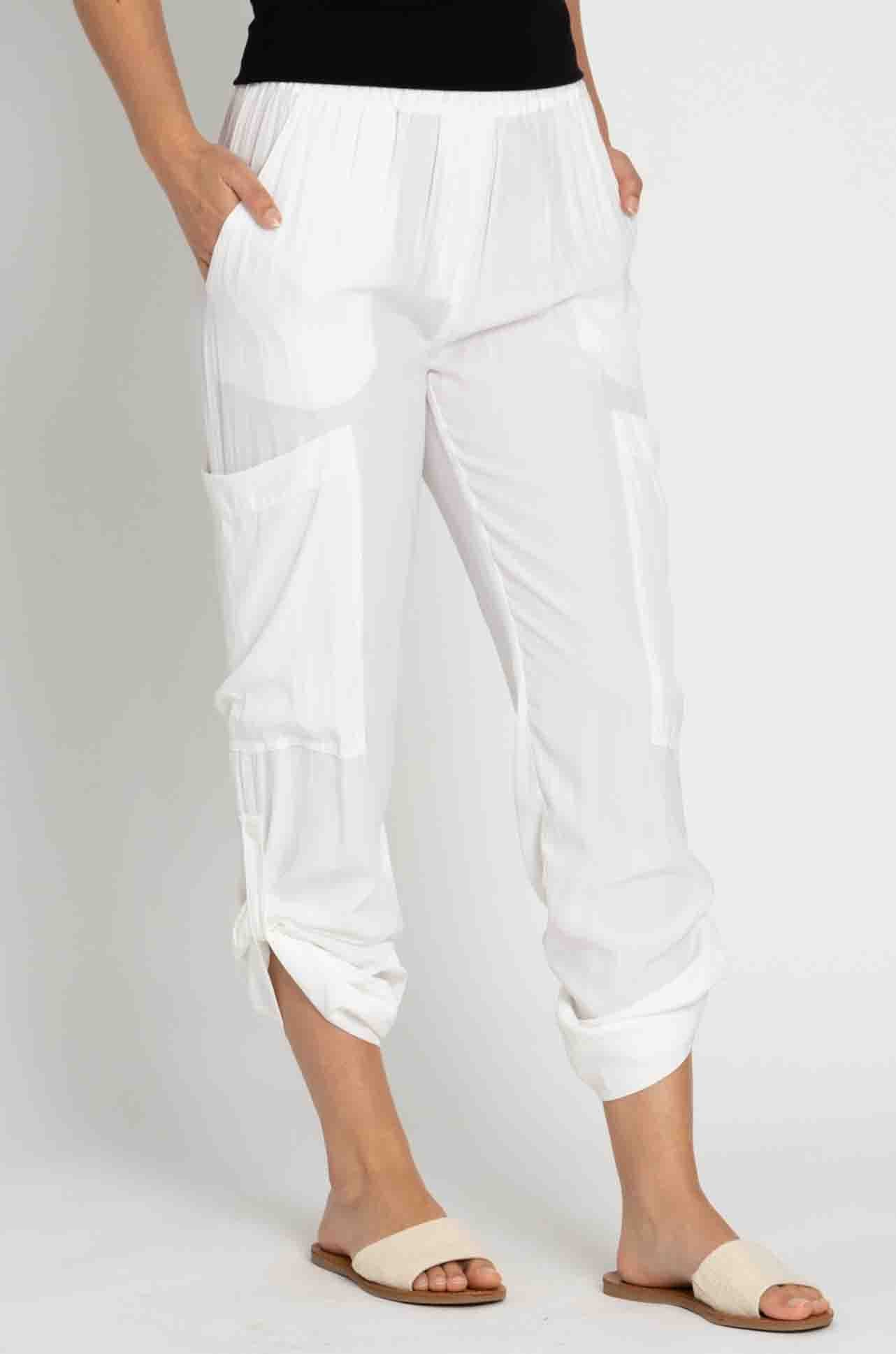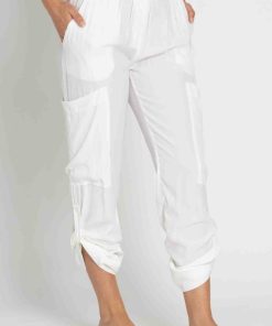 We love this cool relaxed shape. Featuring a comfort fit elastic waist, cargo style pockets and tab rolled legs, this straight-leg pant is a combination of sporty and contemporary style. Team yours with t-shirting and boots for an easy daytime look.