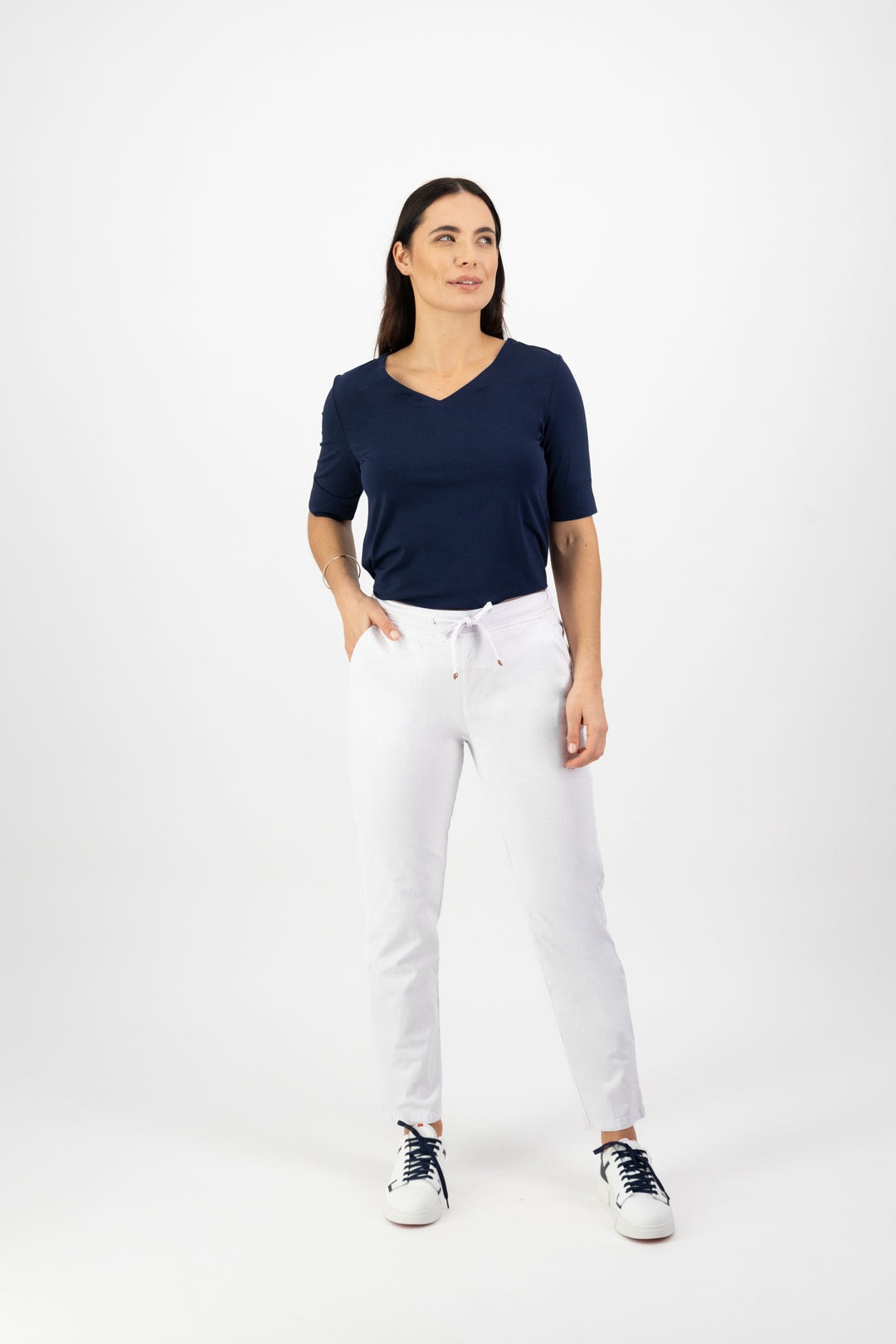 Vassalli Ankle Grazer Slim Leg Elastic Waist Pant – White