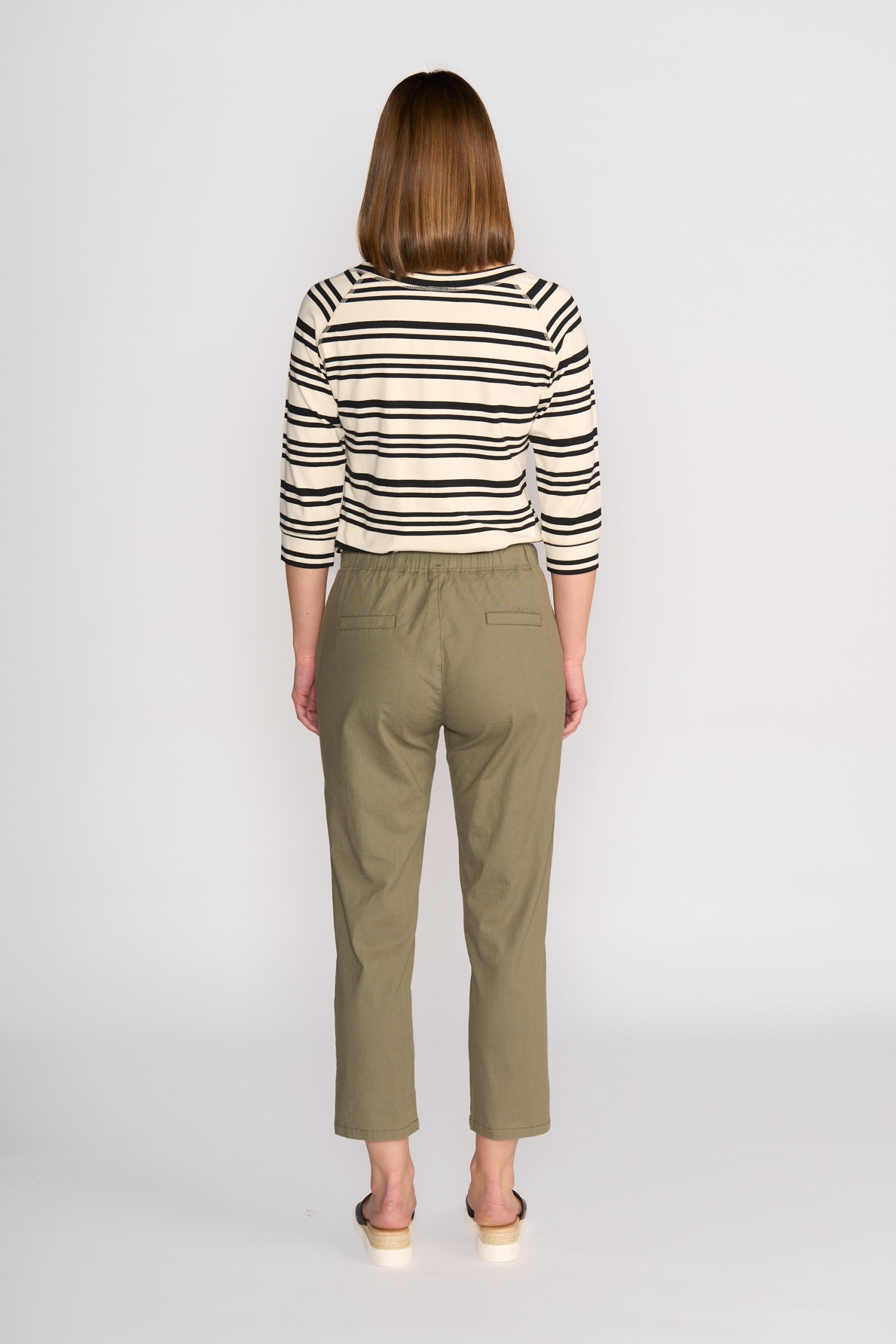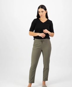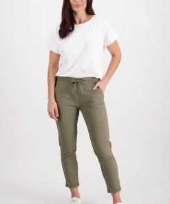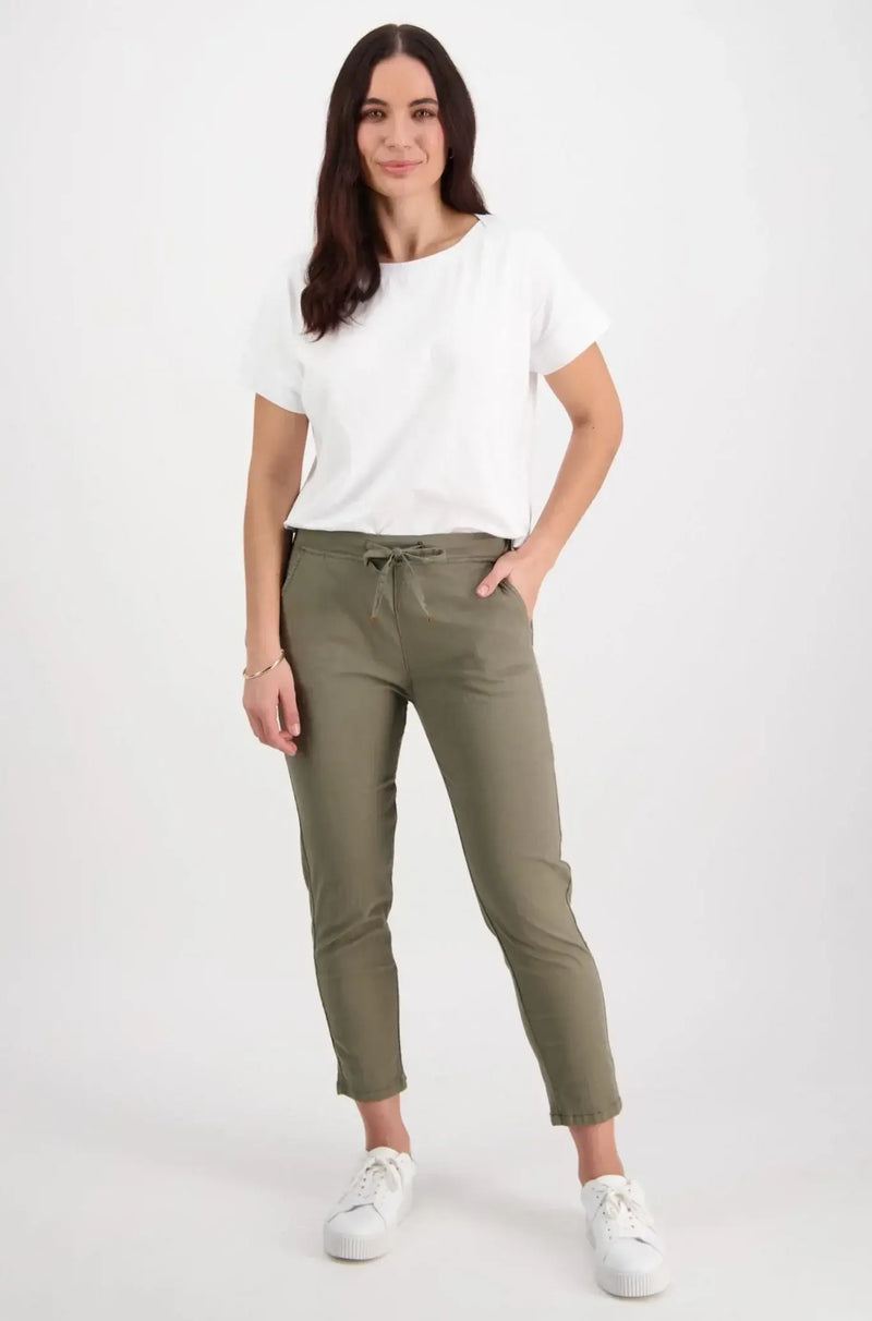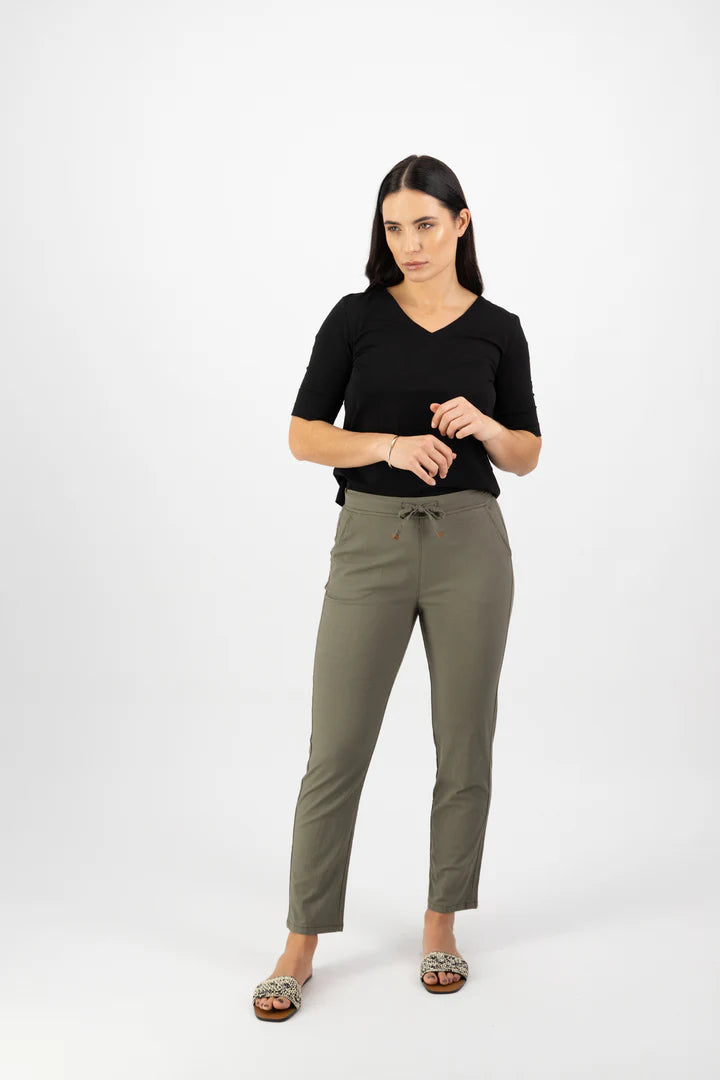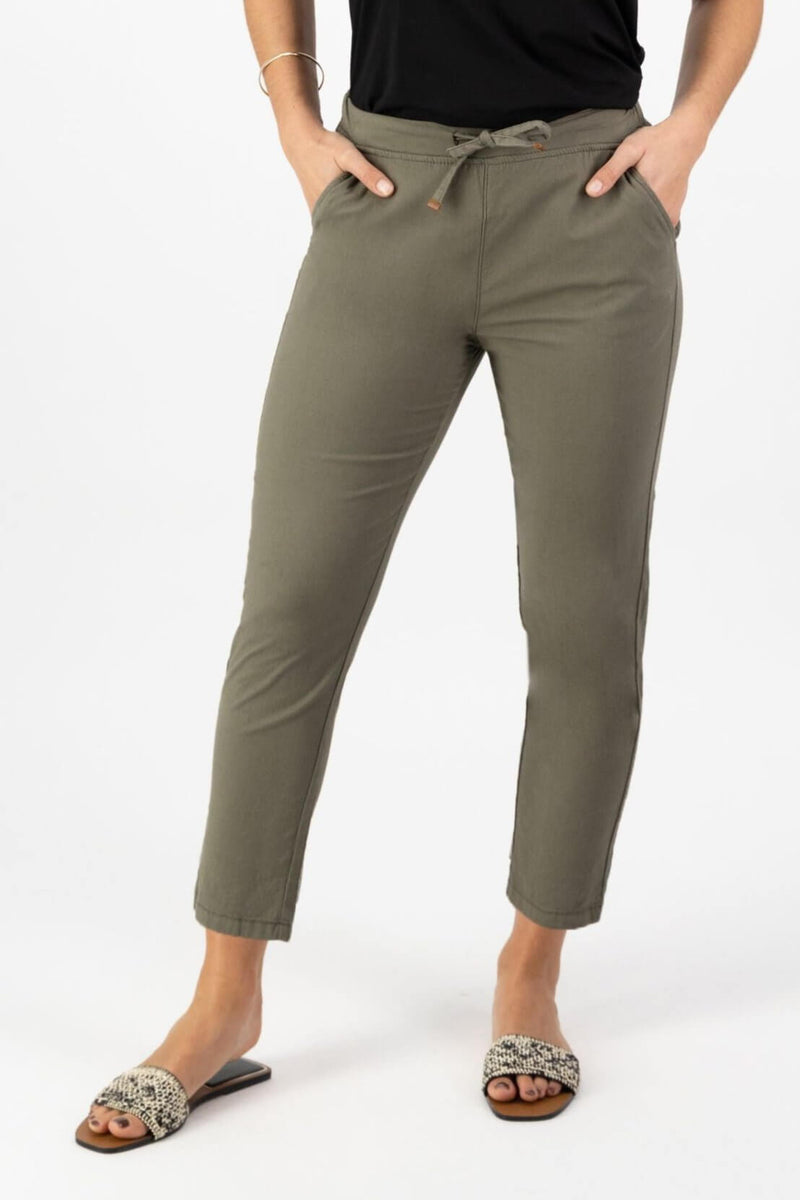 Vassalli Ankle Grazer Slim Leg Elastic Waist Pant – Army