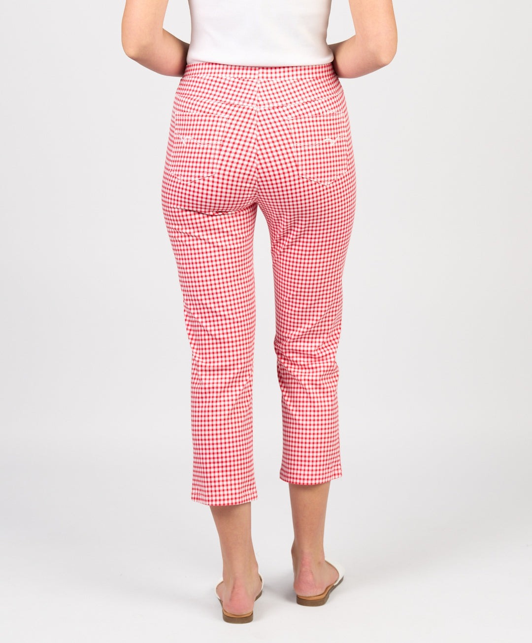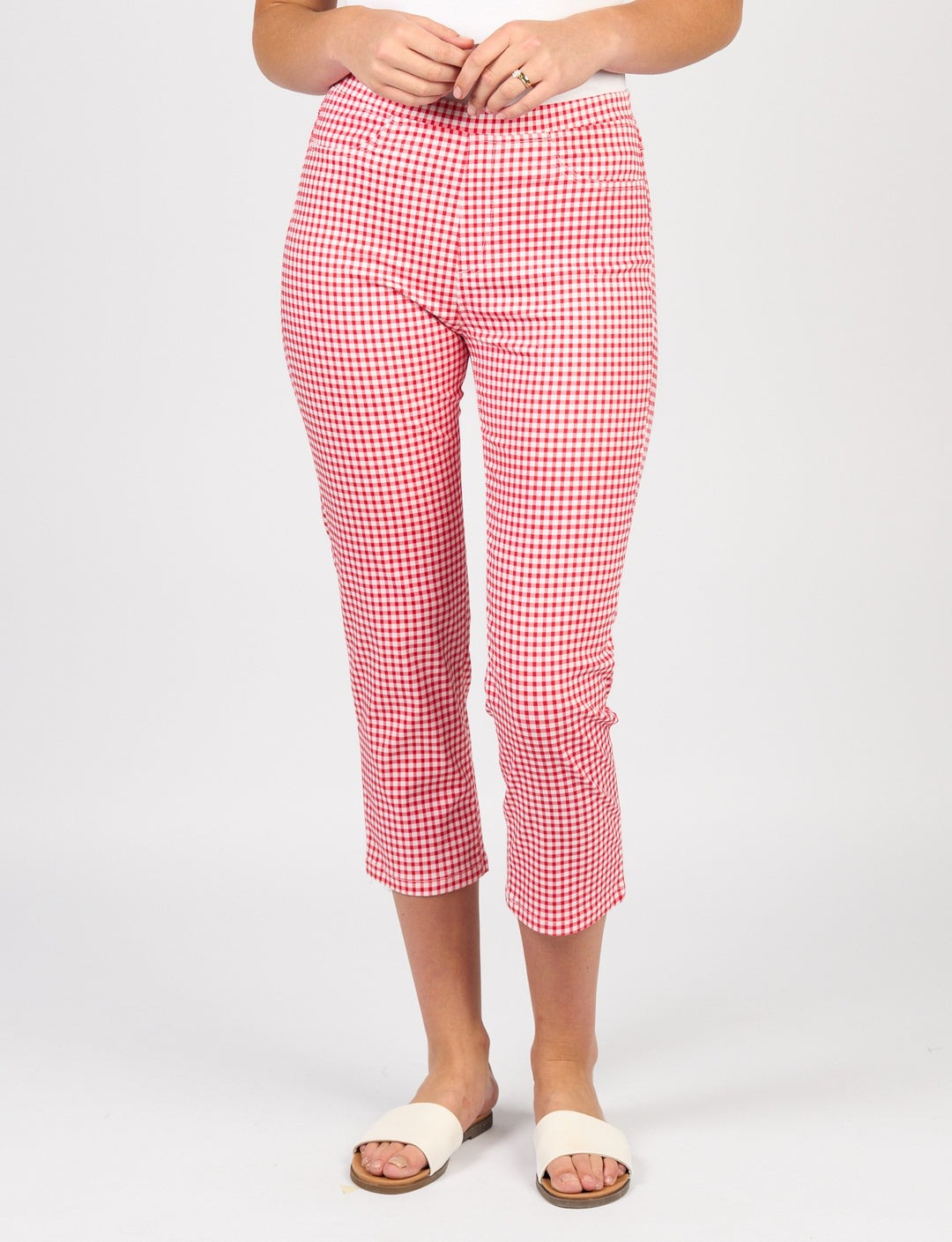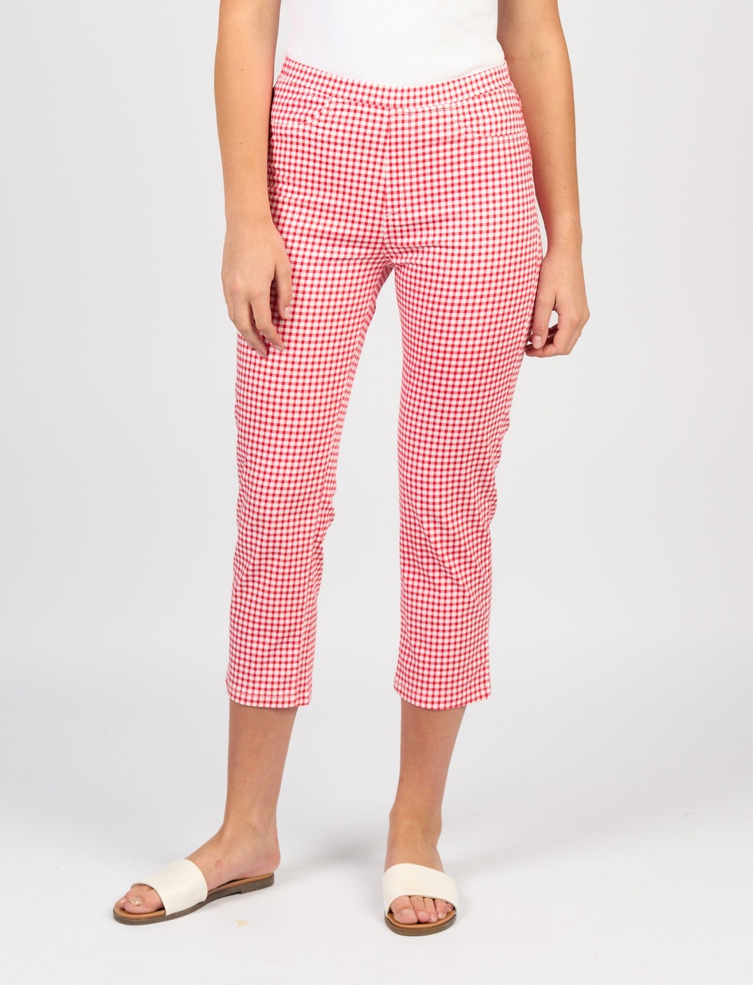 Vassalli Slim Leg 7/8 Lightweight Pull On Pant – Red Gingham