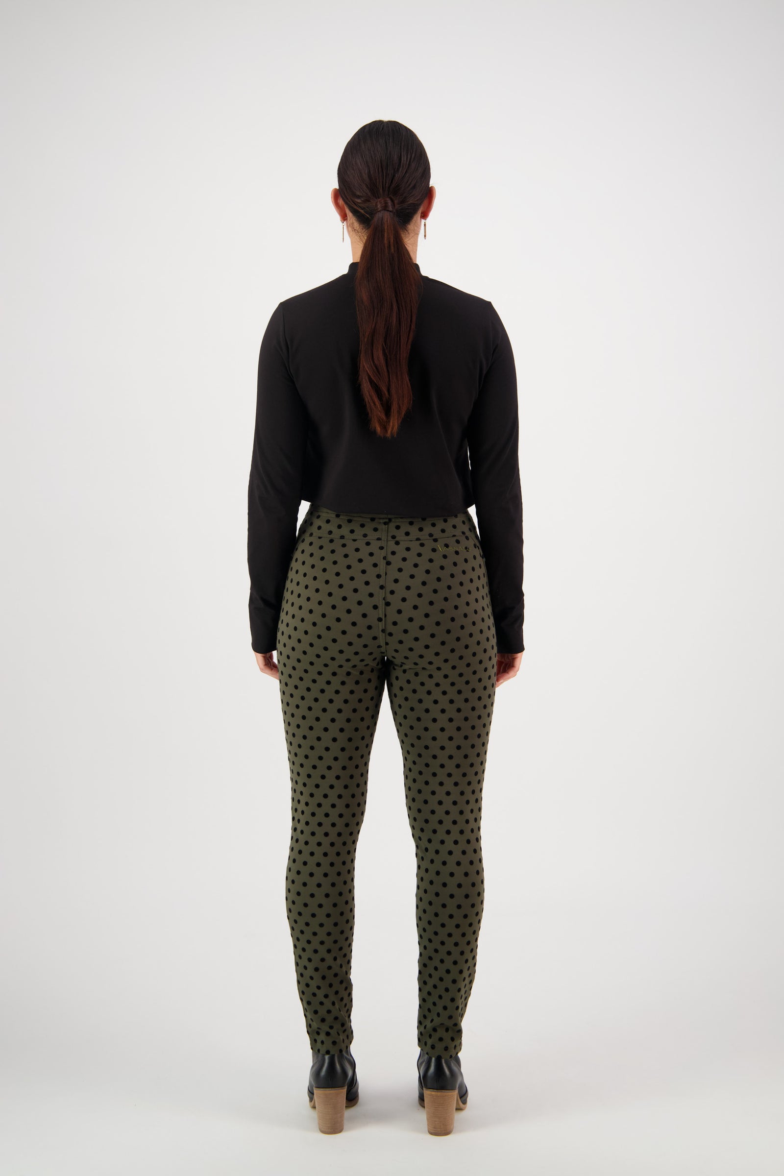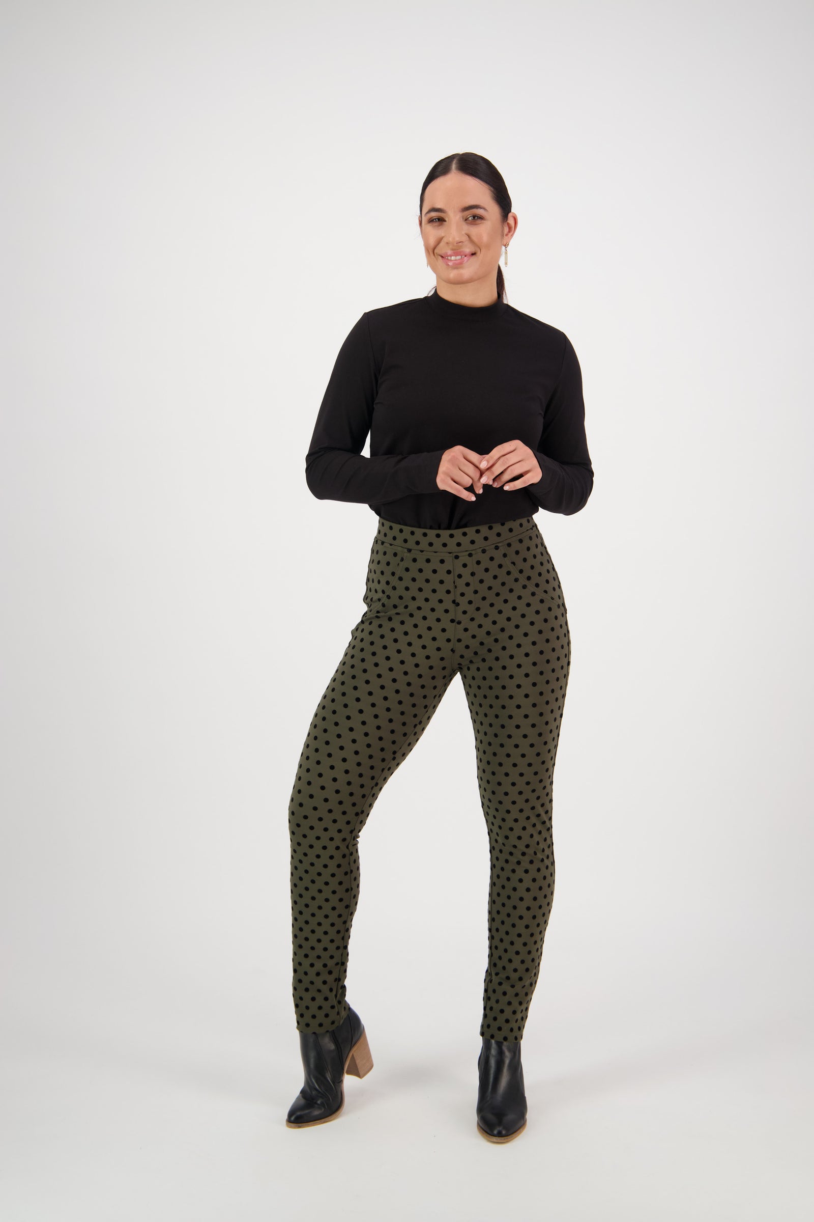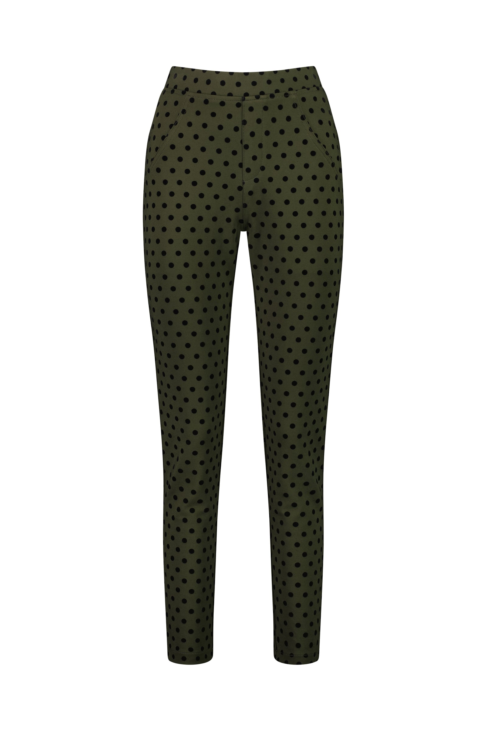 Vassalli Skinny Leg Velvet Spot Pull On Pant – Khaki
