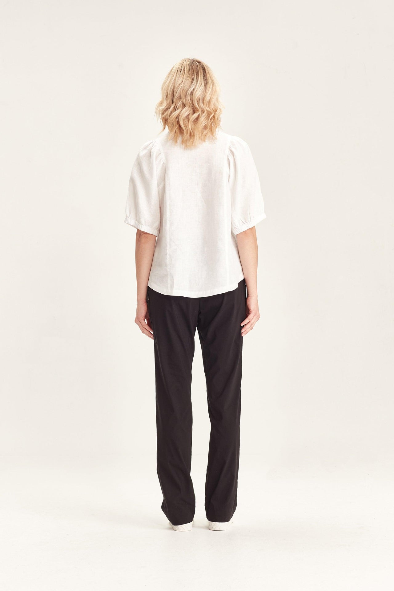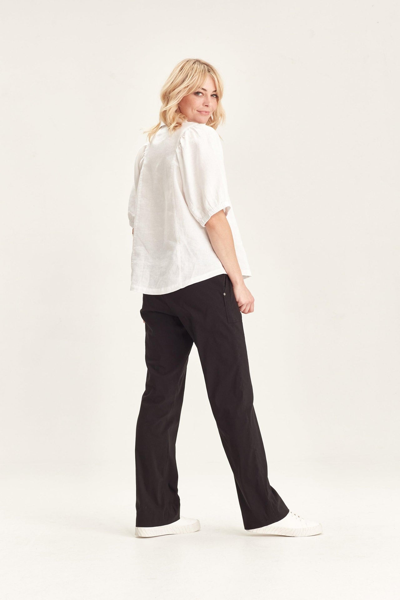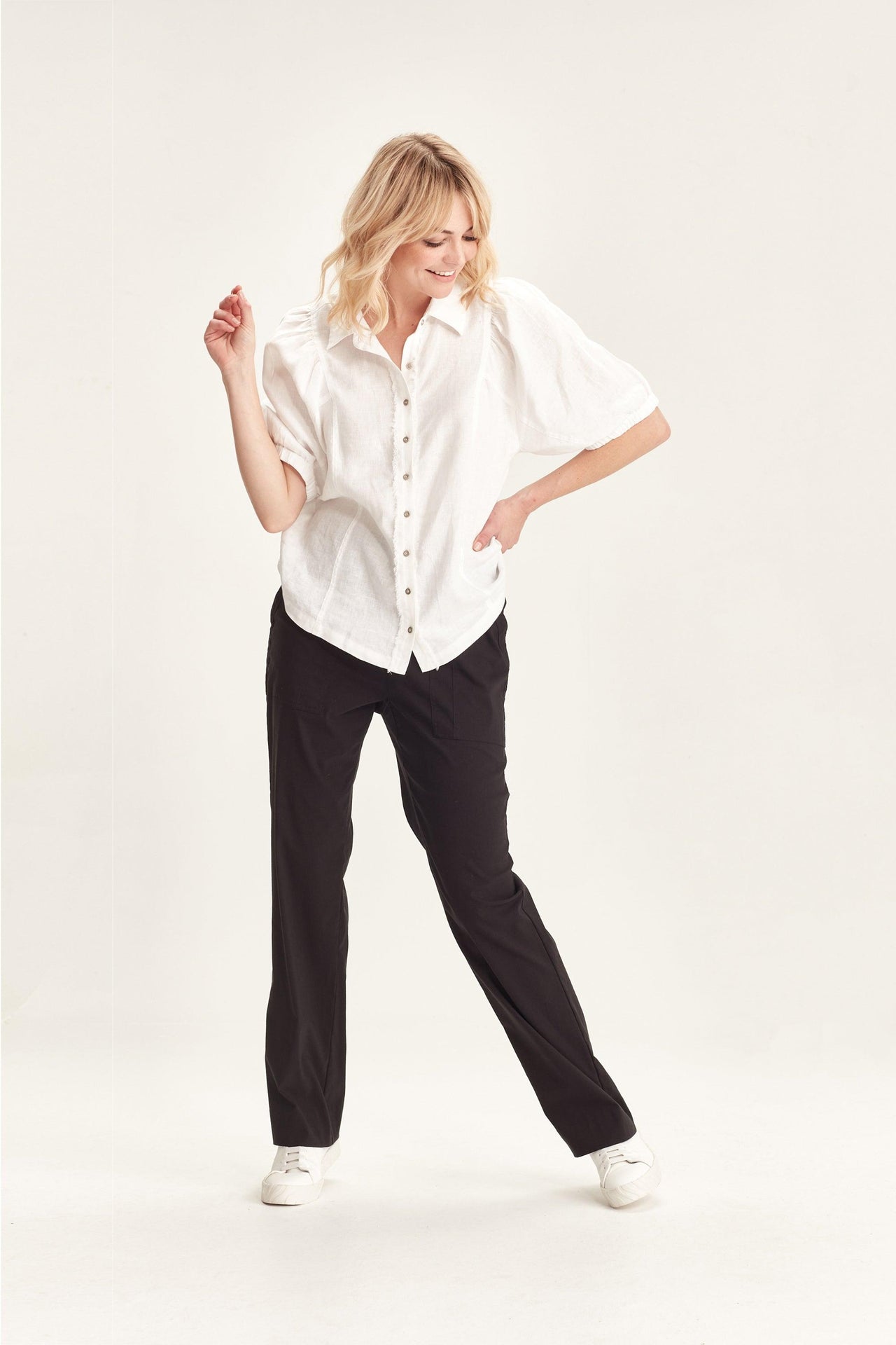 A classic full-length pant. Easy fitting straight leg. Neat interest front pockets. Subtle rivet detail. Easy-fitting pants made in VERGE’s exclusive European lightweight stretch Cotton Acrobat fabric for comfort, breathability, and easy care.