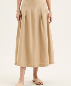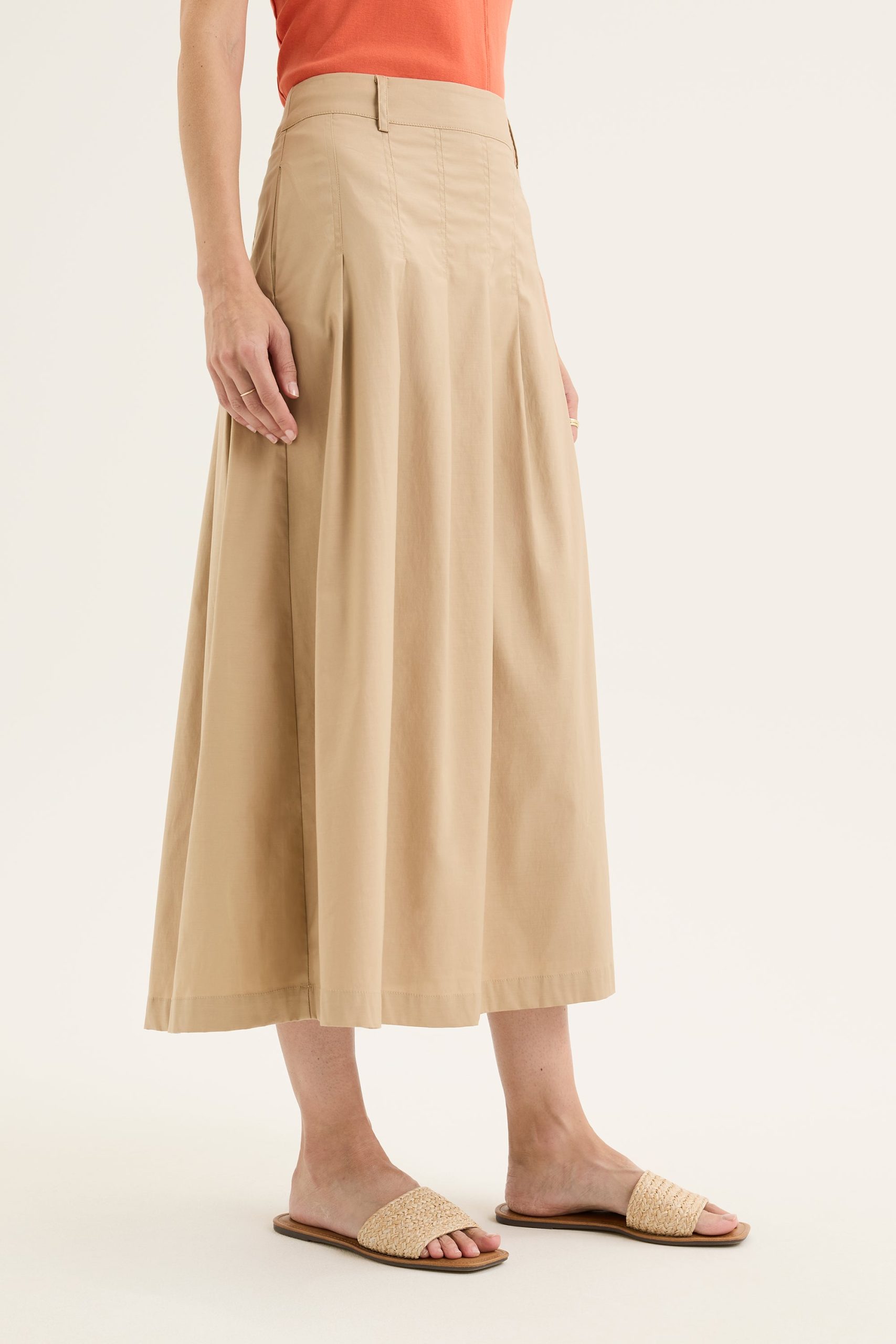 The Petal Skirt is a refined take on everyday femininity, combining soft structure with thoughtful detail. Cut in a flattering A-line silhouette, this midi-length skirt features front and back pintucks that add gentle dimension, enhancing its graceful shape. A fixed waistband with belt loops offers a tailored finish and styling versatility, while the invisible side zip keeps the look clean. Crafted from a breathable cotton blend with a touch of stretch, it moves with ease and comfort. Falling to the calf, this is a beautifully made skirt with a timeless feel – easy to dress up or down, and a quiet blend of pretty and utility for any wardrobe