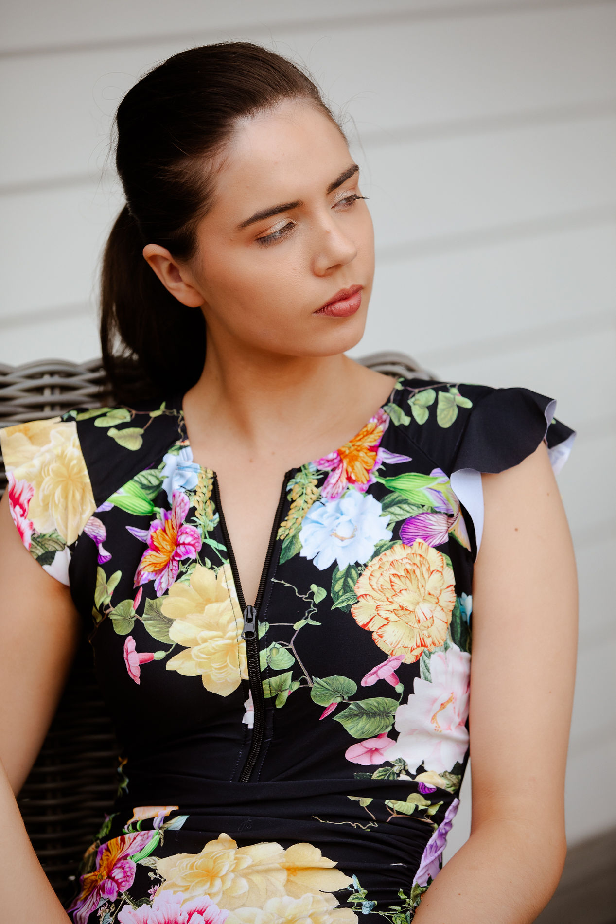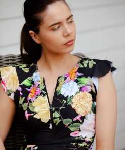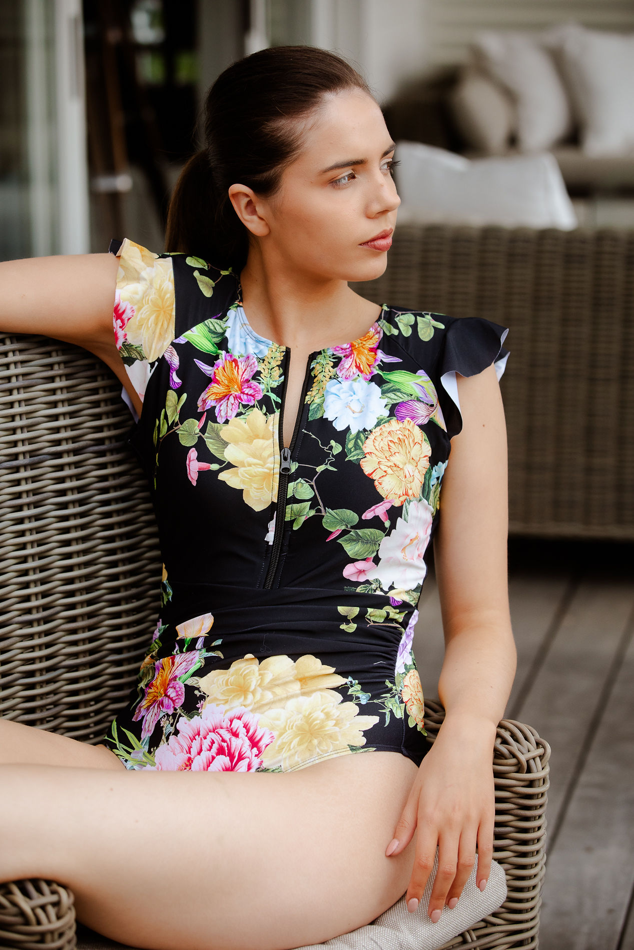 Bring it in Swim Georgia Frill Sleeve Rashsuit – Black Floral