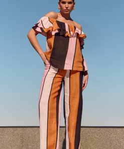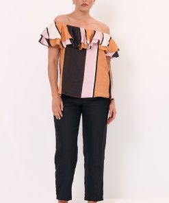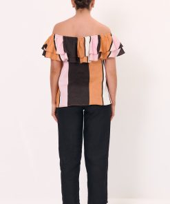 The Serena Linen Frill Top is crafted from 100% linen in an exclusive stripe. Designed with a layered frill, elasticised neckline and dipped hem, it can be worn off, on, or one shoulder for a relaxed, versatile look.