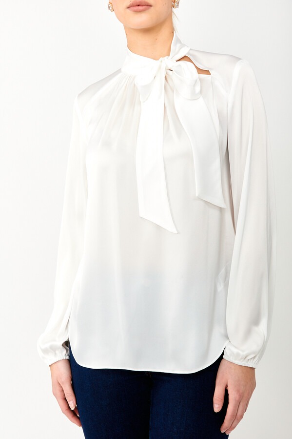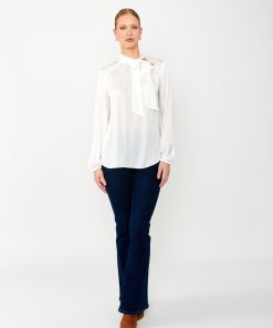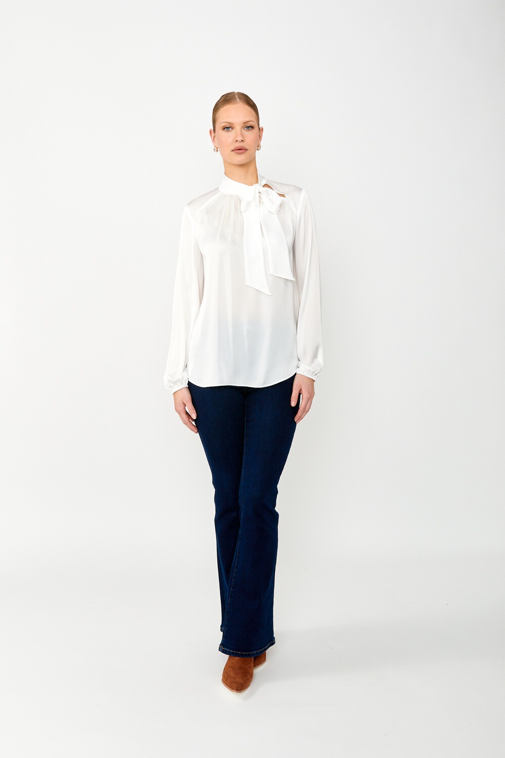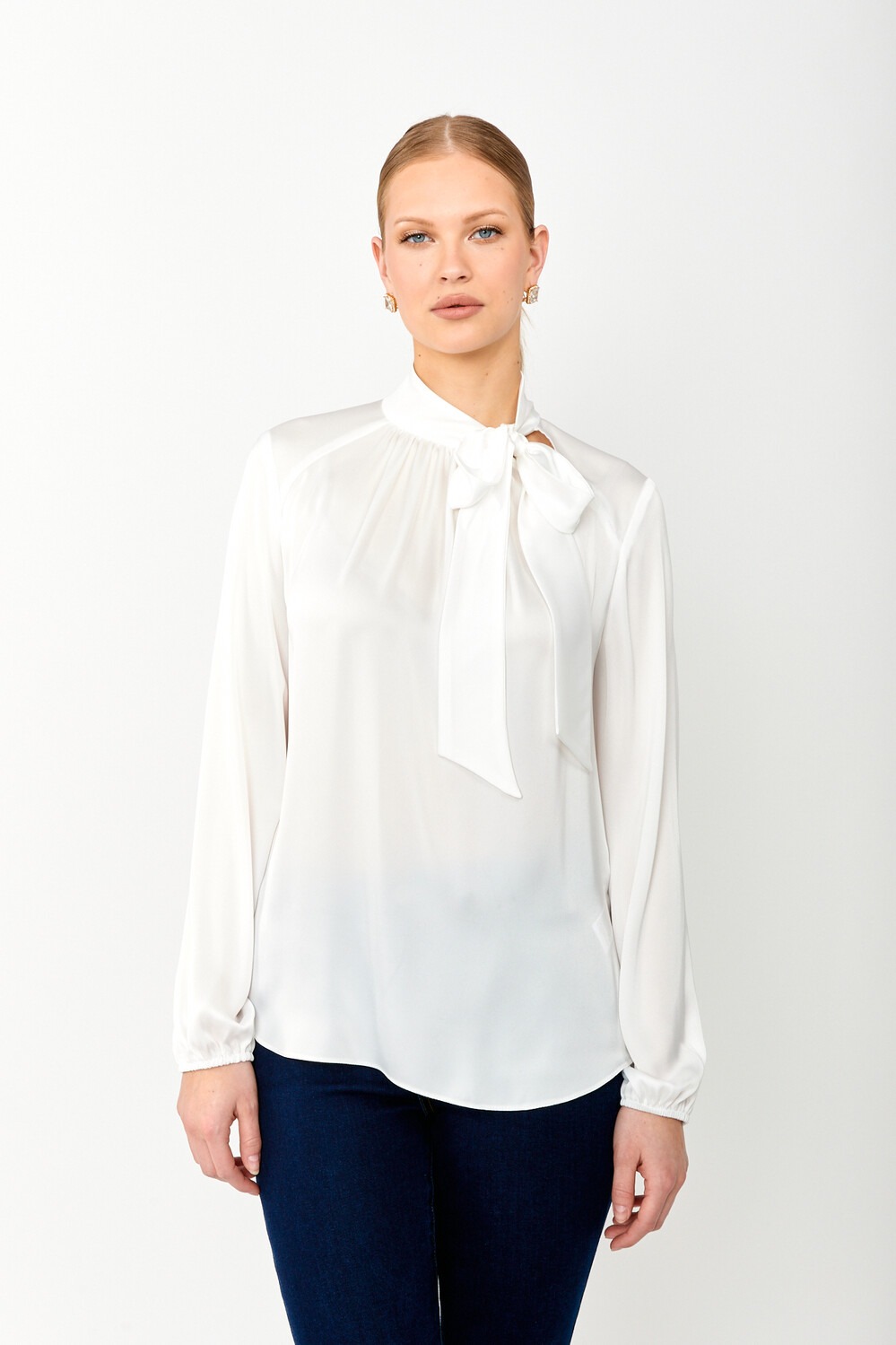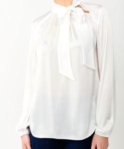 Joseph Ribkoff Pussy Bow Tie Neck Blouse – Vanilla
