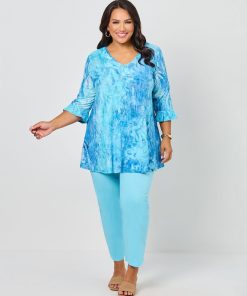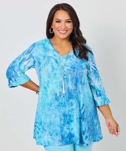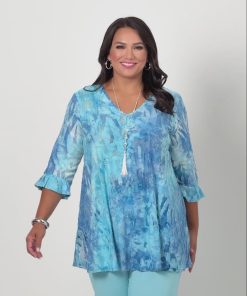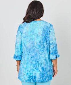 Echoing the clear blue sky, this plus size top delivers the chic, classic styling you expect from Swish. With its fresh print, comfortable fit, and feminine details, this stretch top is the epitome of effortless summer style.