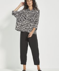 Crafted in a soft rayon-viscose blend, the Verge Tidal Shirt is an easy, boxy silhouette elevated by a bold black-and-white abstract print. It features a clean concealed front placket, dropped shoulders, and 3/4-length cuffed sleeves for a relaxed yet modern finish. A versatile style that works just as well tucked in or worn loose. Wear with the matching Tidal Pant for a modern outfit solution.