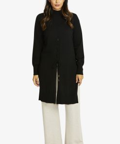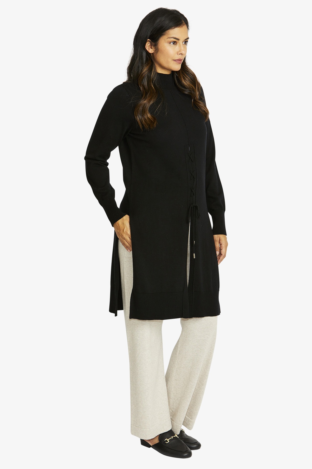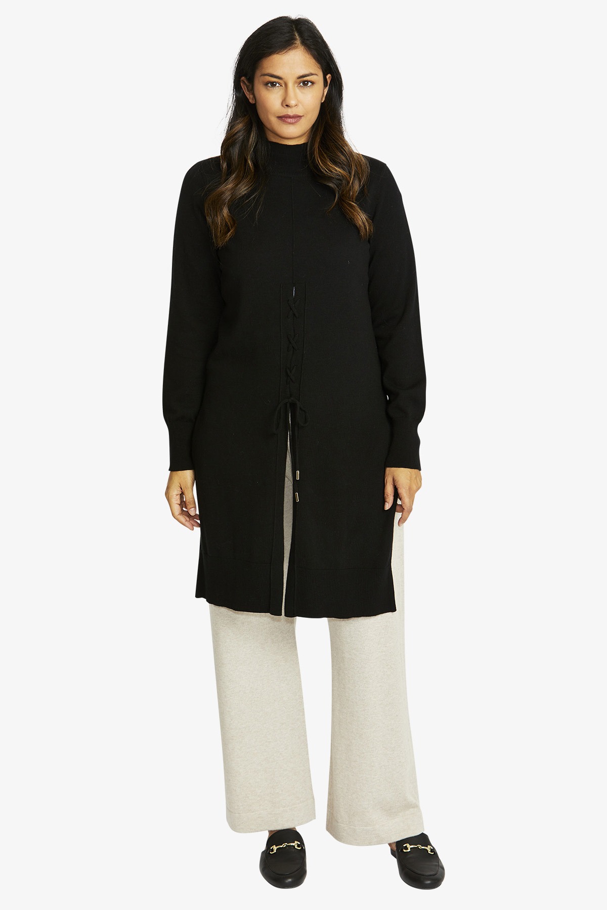 Turtleneck Front split with lace up detail Long length with side splits 50%Wool 50% Cotton