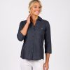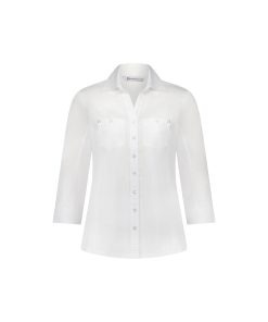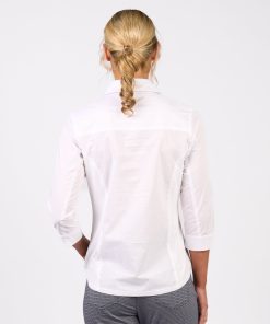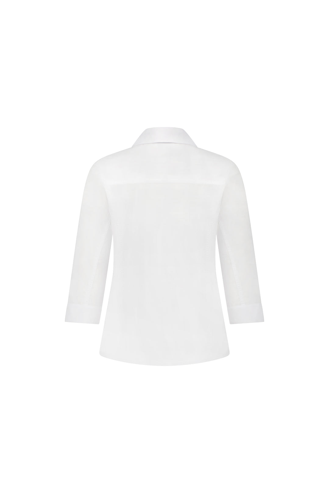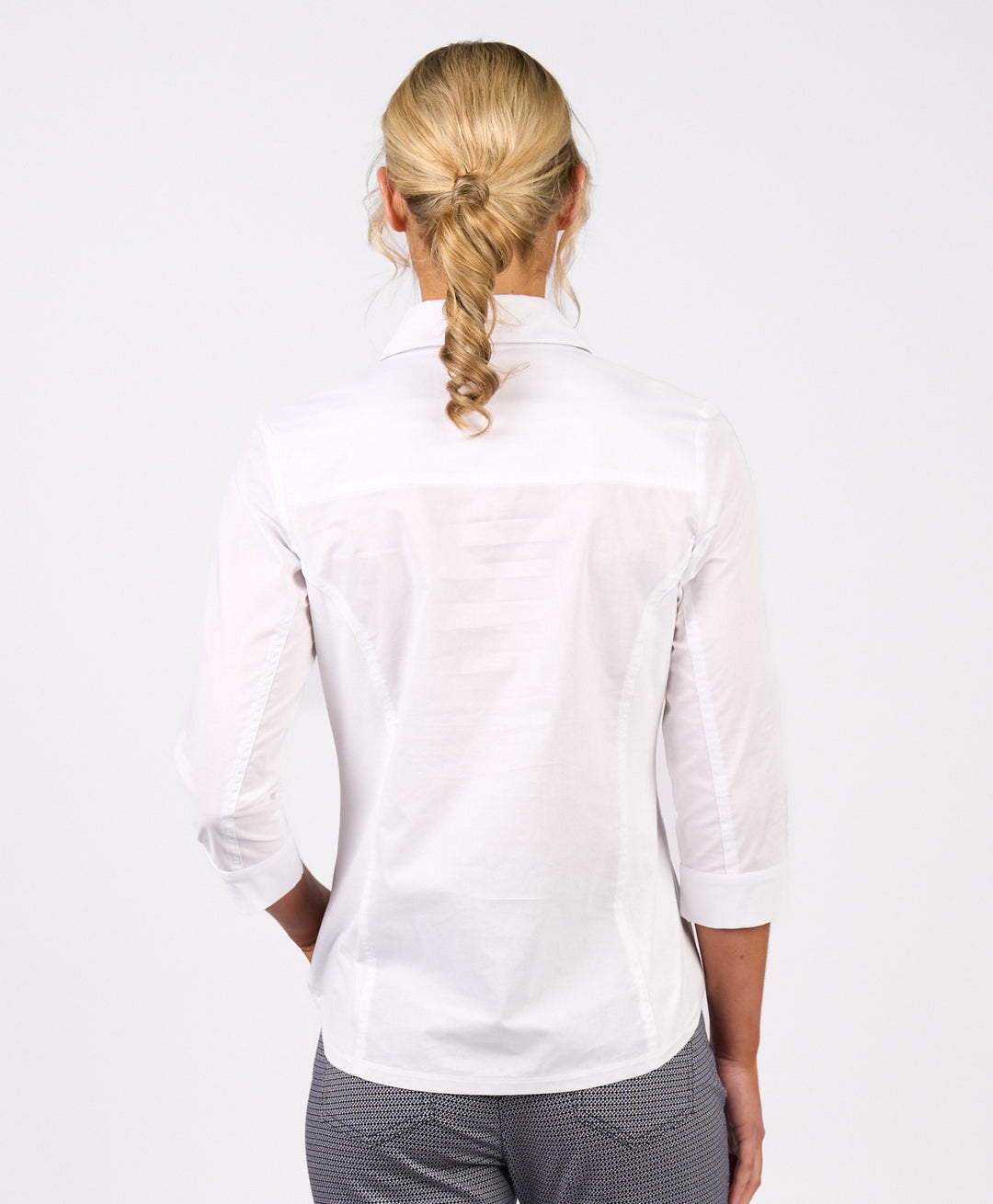 This button-up collared shirt with 3/4 length sleeves is made from 100% cotton for breathable comfort. Featuring soft rib panels at the sides, it offers a flexible, slim fit with a clean, structured look.
