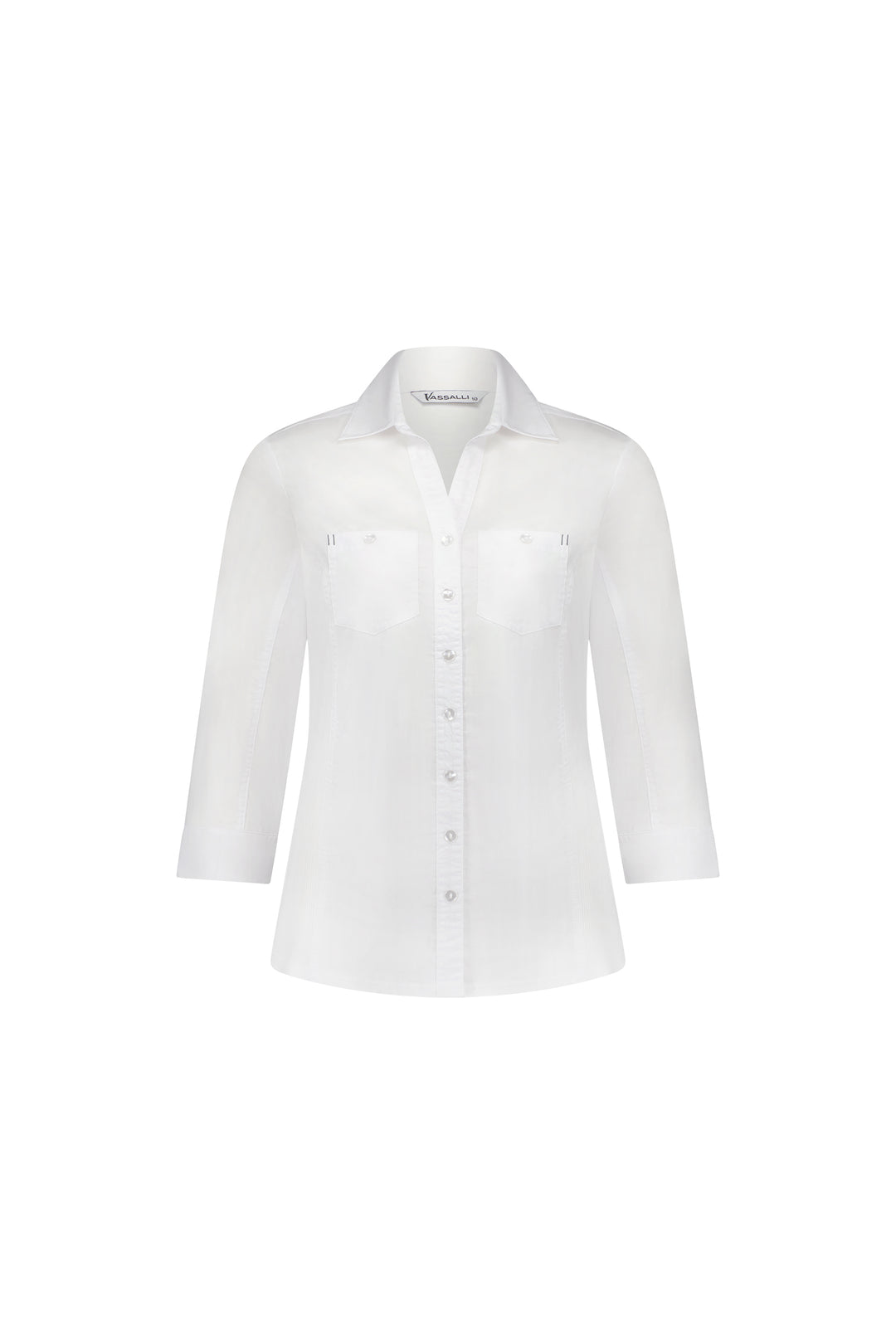 Vassalli Plain Button Up Shirt with Rib Panels – White