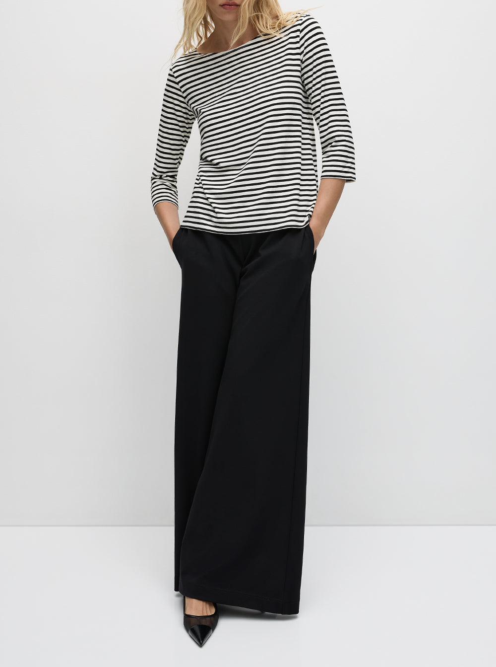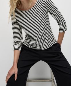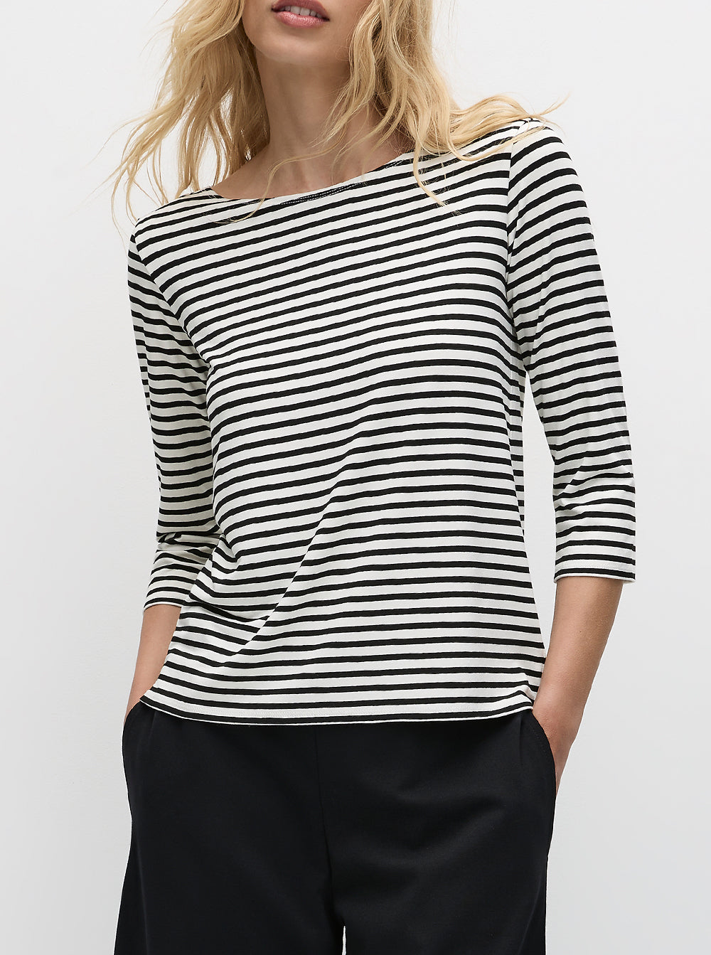 Mela Purdie Relaxed Boat Neck – Black/Vanilla Straw Stripe