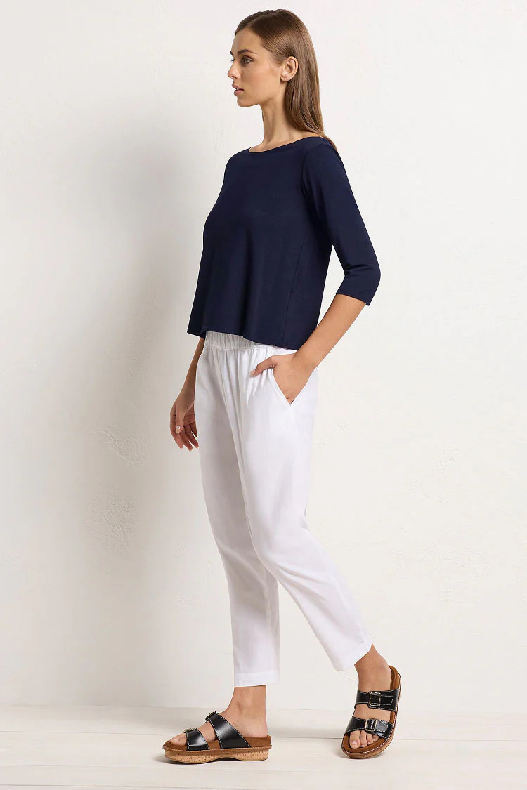 Mela Purdie’s classic Boat Neck now has a relaxed silhouette. Extra room has been added to the waistline to create a comfort top that has an urban edge. Wear it with the soft zip pant for the perfect travel ensemble.