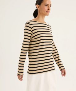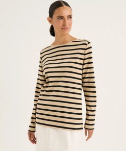 Yarra Trail Boardwalk Tee – Oat/Navy Stripe