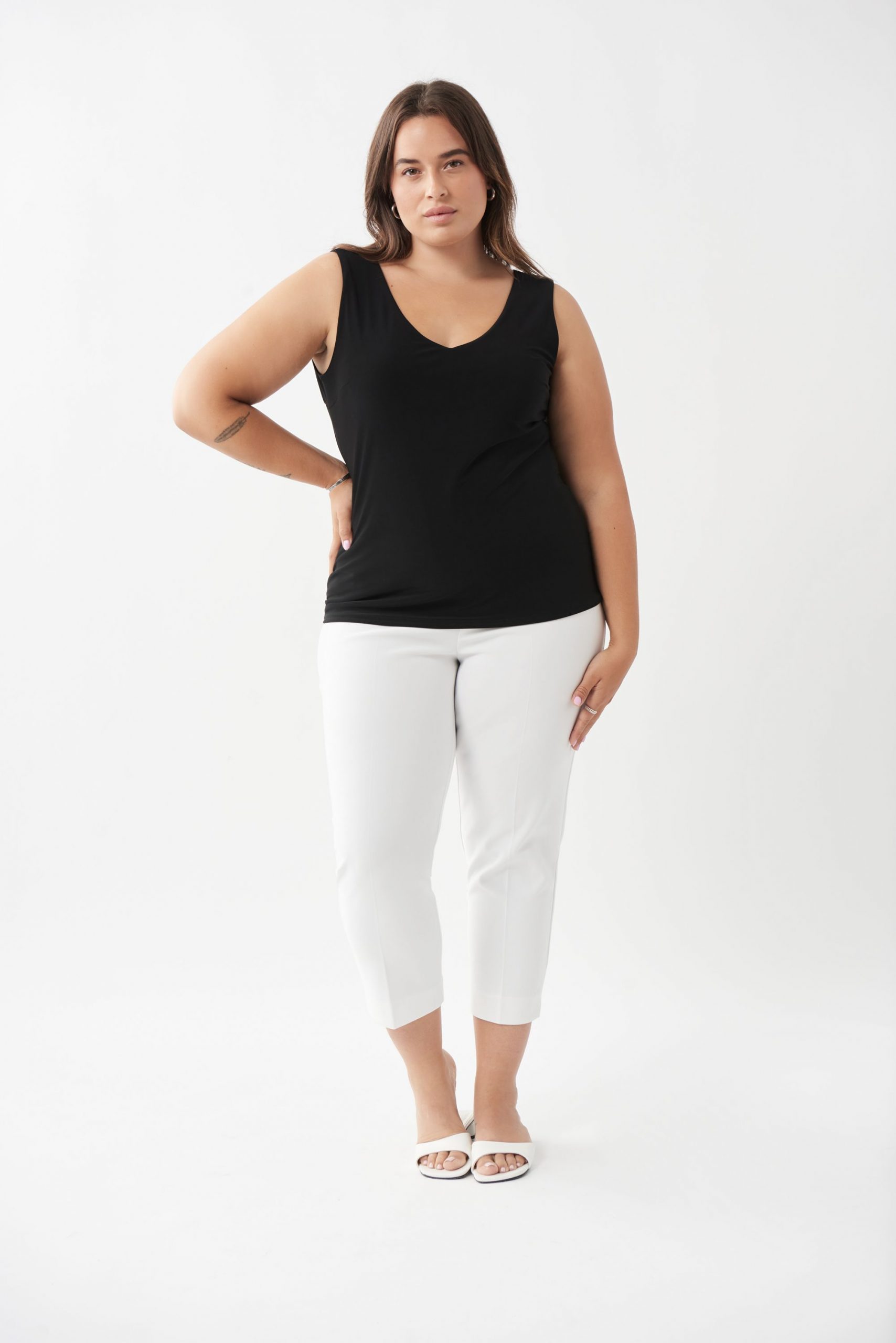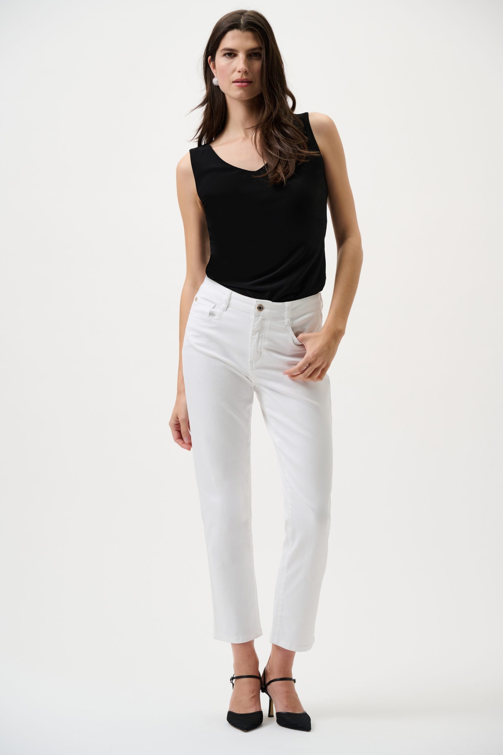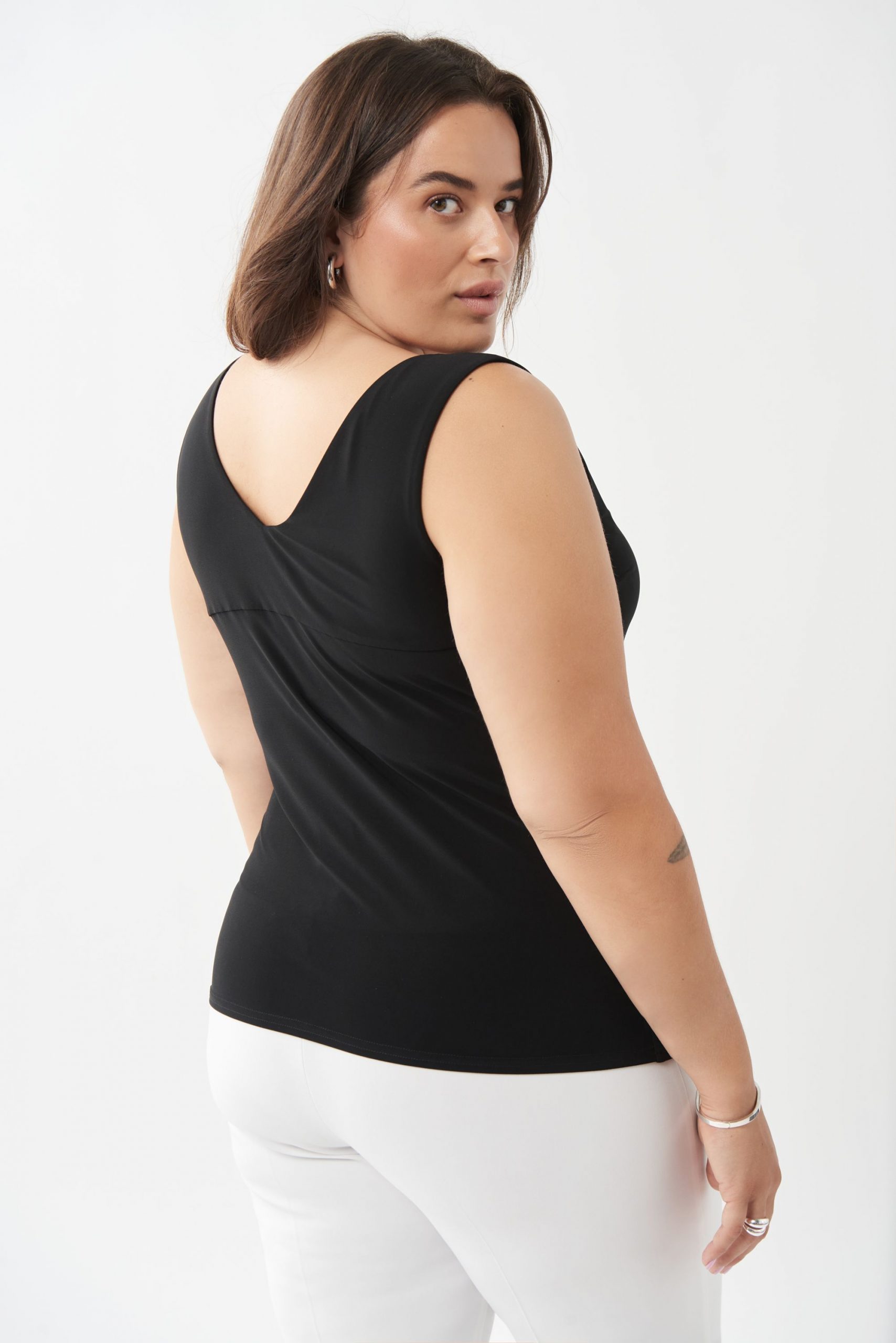 Solid tank top cami designed by Joseph Ribkoff is fitted and sleek to fit perfectly underneath the perfect jacket, coverup or sweater.